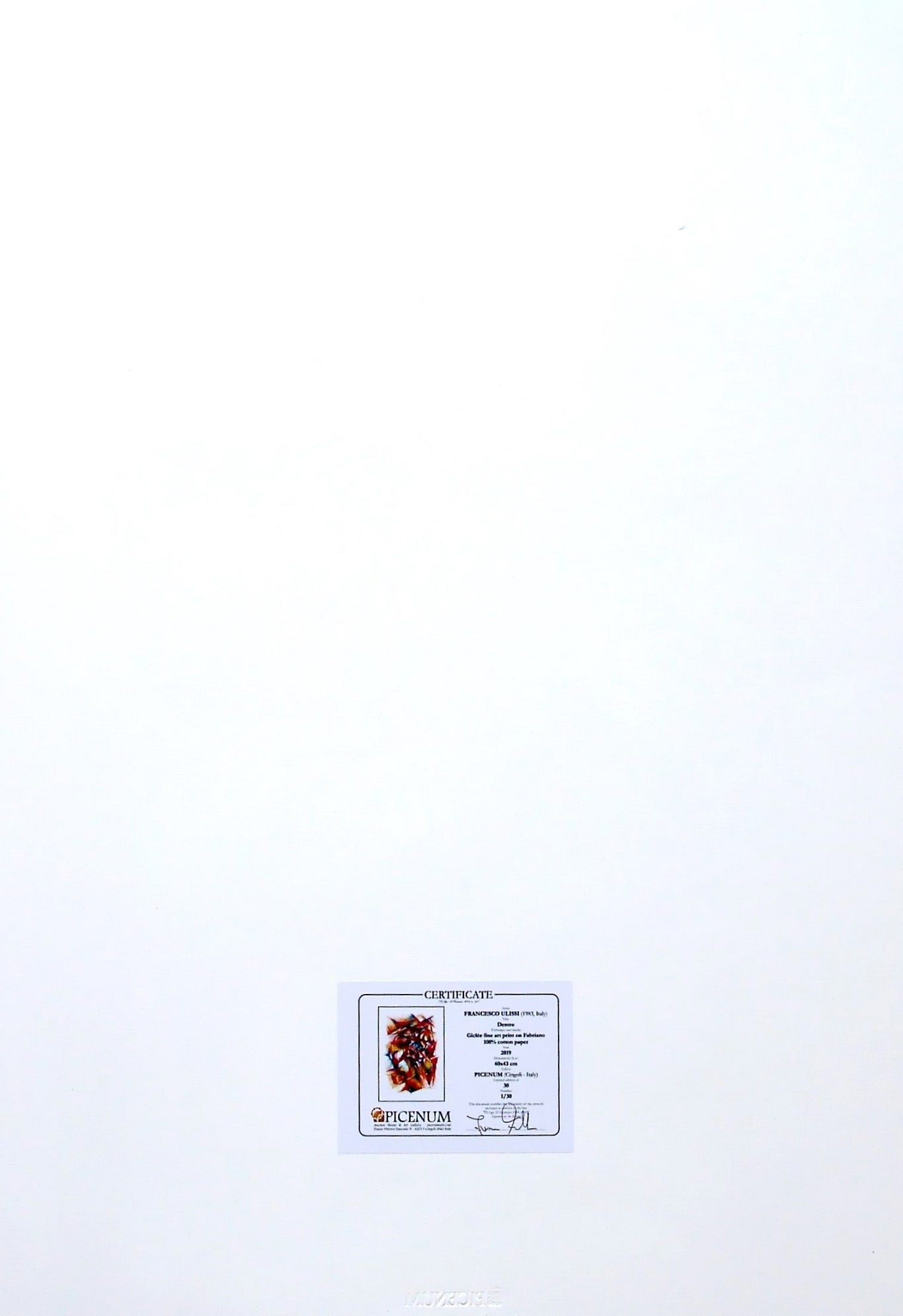 certificato di autenticità e timbro a secco dell'editore Picenum