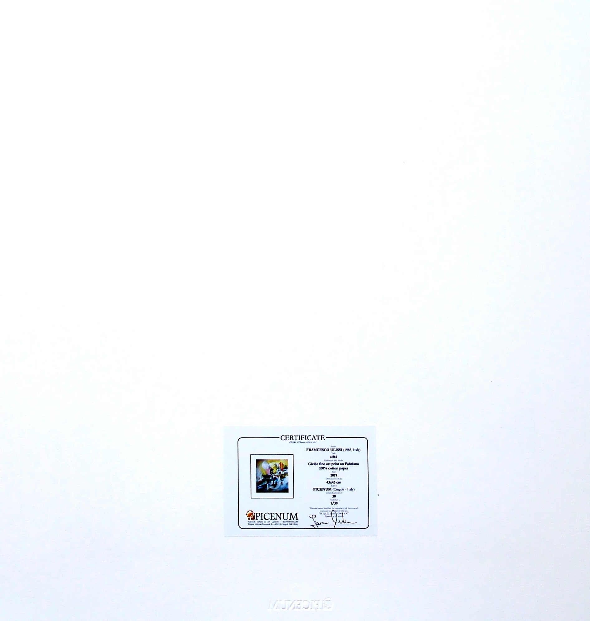 certificato di autenticità e timbro a secco dell'editore Picenum