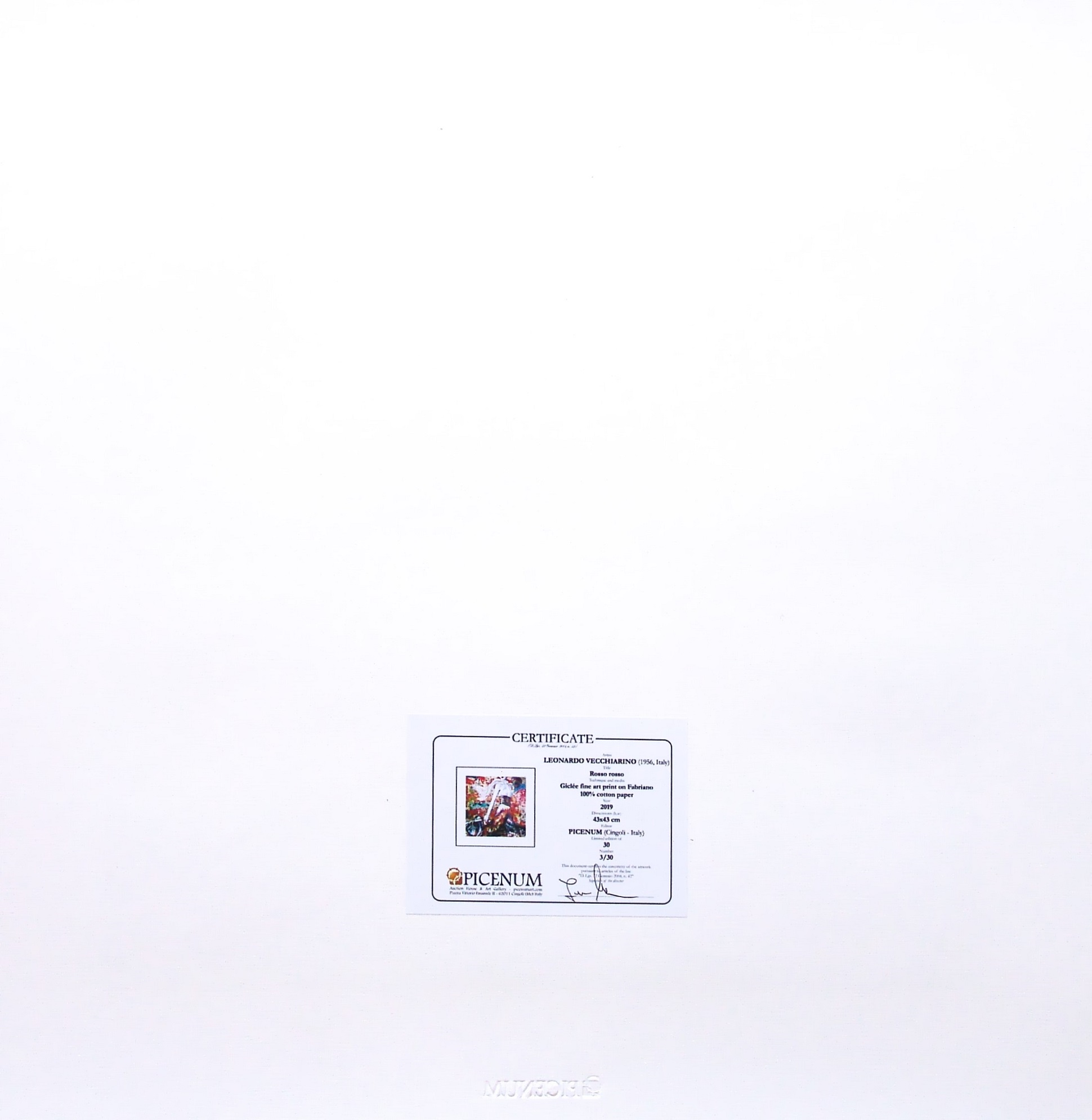 certificato di autenticità e timbro a secco dell'editore Picenum