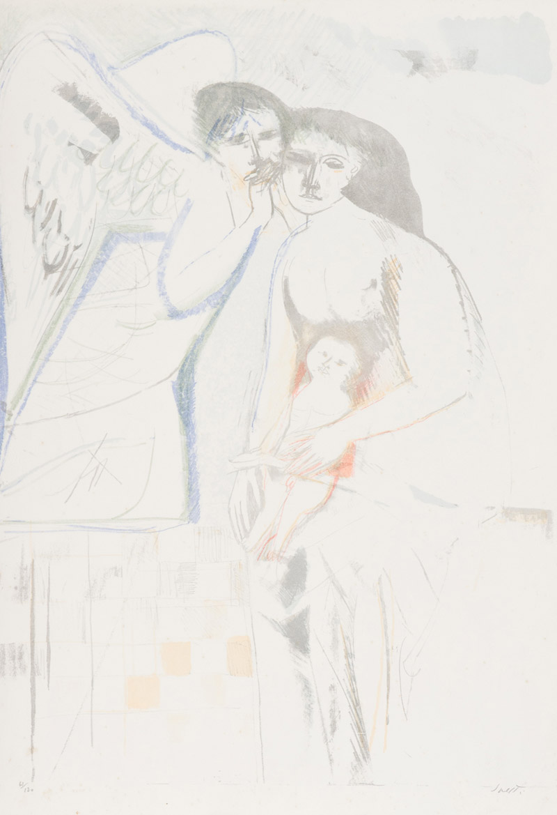 Bruno Saetti Maternità Litografia su carta, cm. 70x50, es. 61/120 La carta presenta lievi fioriture. Firma in basso a destra, tiratura in basso a sinistra.