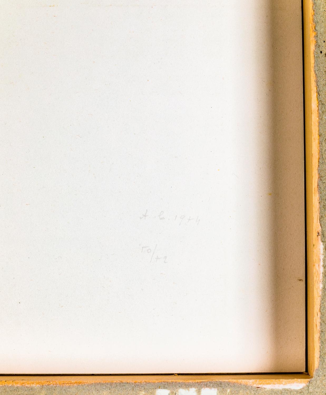 Sigla dell'Artista, datazione e numerazione (Esemplare 50/72) a matita al retro
