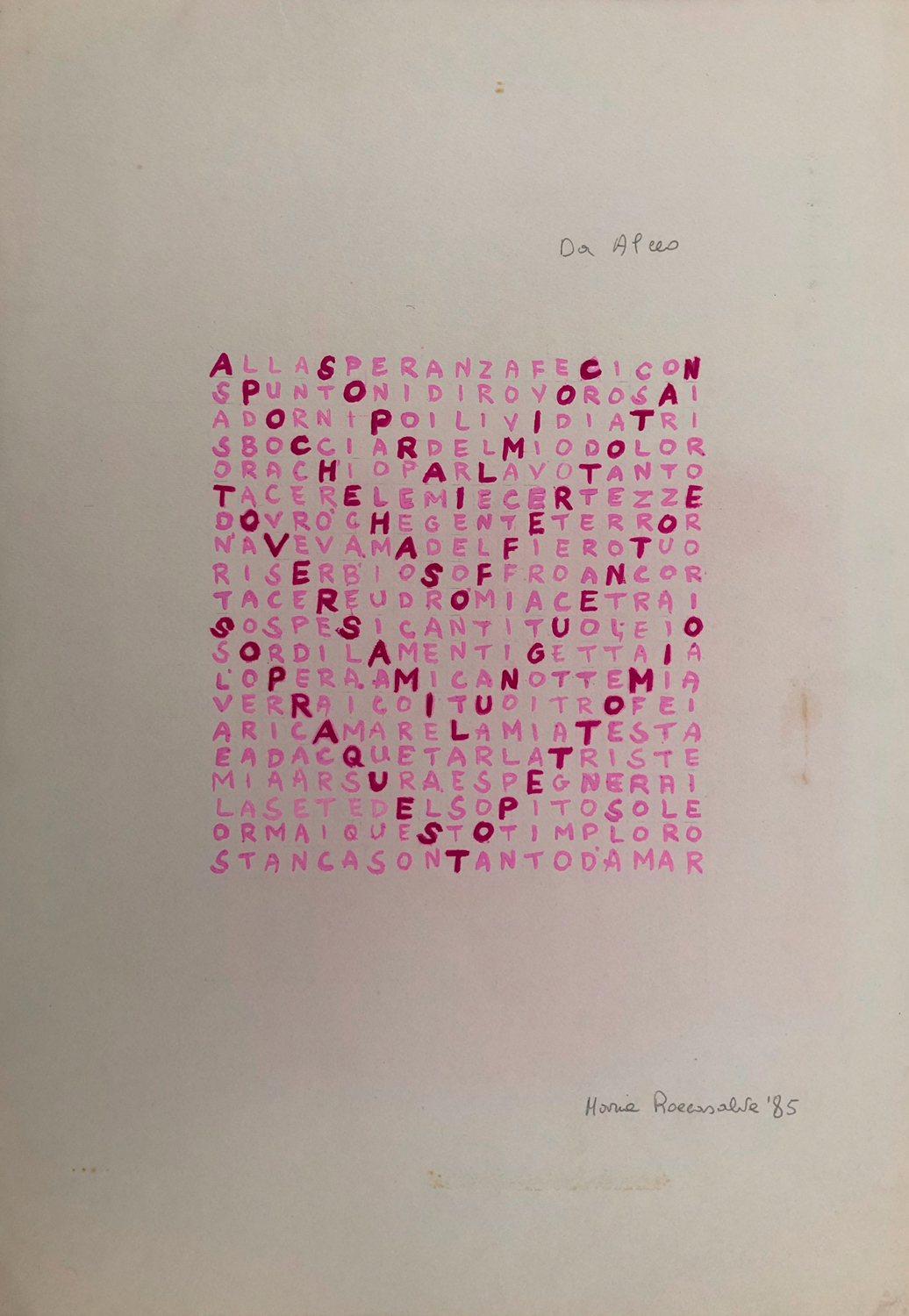 Lotto unico composto da 9 opere tra tecniche miste, opere grafiche e biglietti augurali (opere di Maria Roccasalva, V. Caruso, Salvatore Esposito, Fiorentino, Gino Masciarelli, Bacich e 2 autori indecifrati)