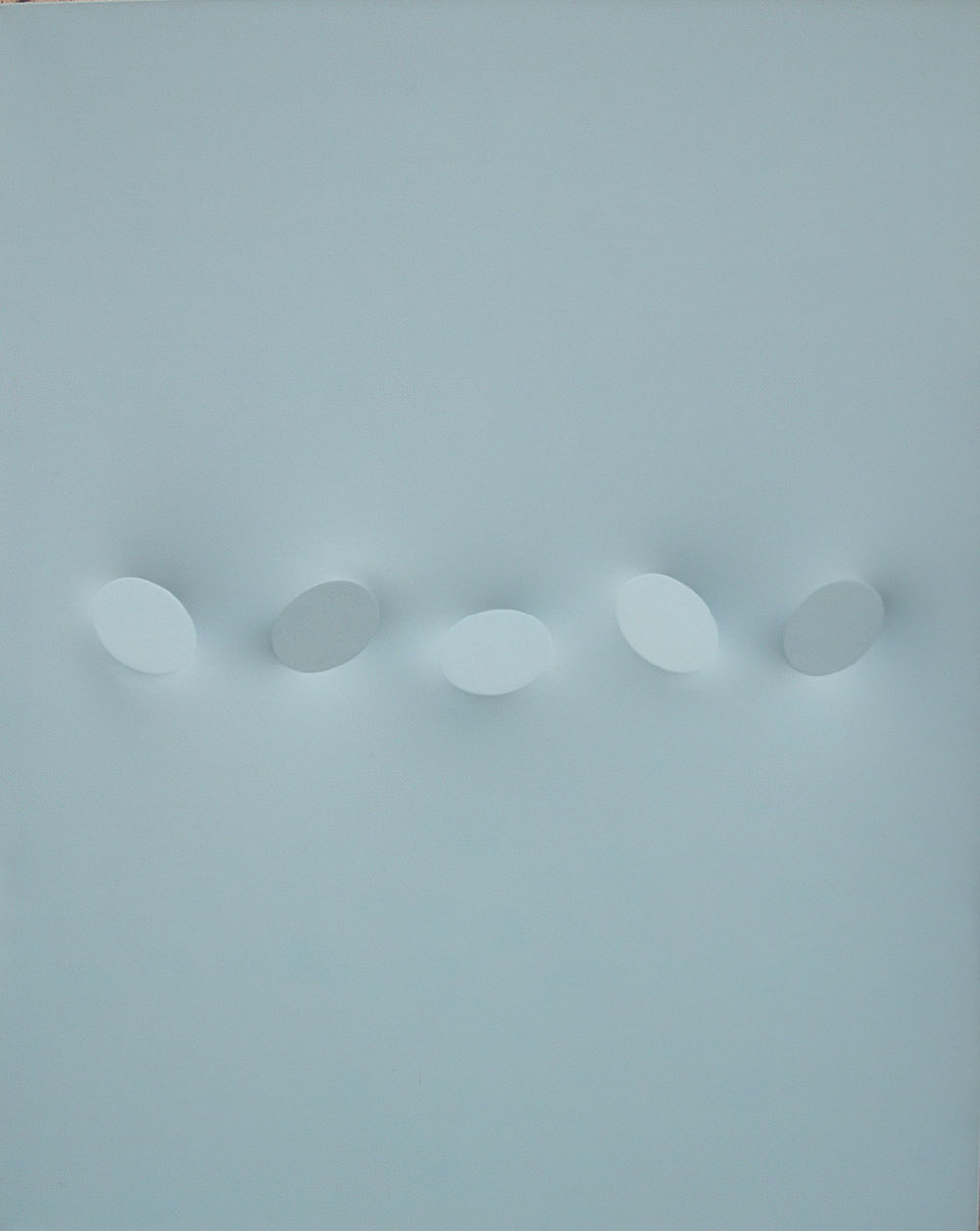 Estroflessione su tela (azzurra) in teca di plexiglass