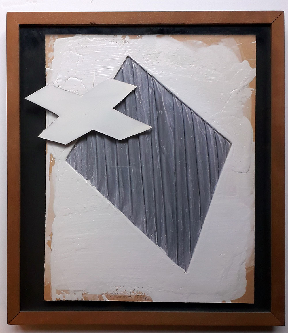 Mista su cartone con collage e piombo