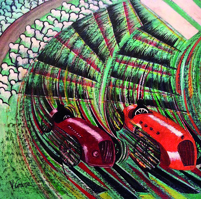 Vittorio Corona Olio su tela 50x62,5 Targa Florio Autentica Artisti Siciliani
