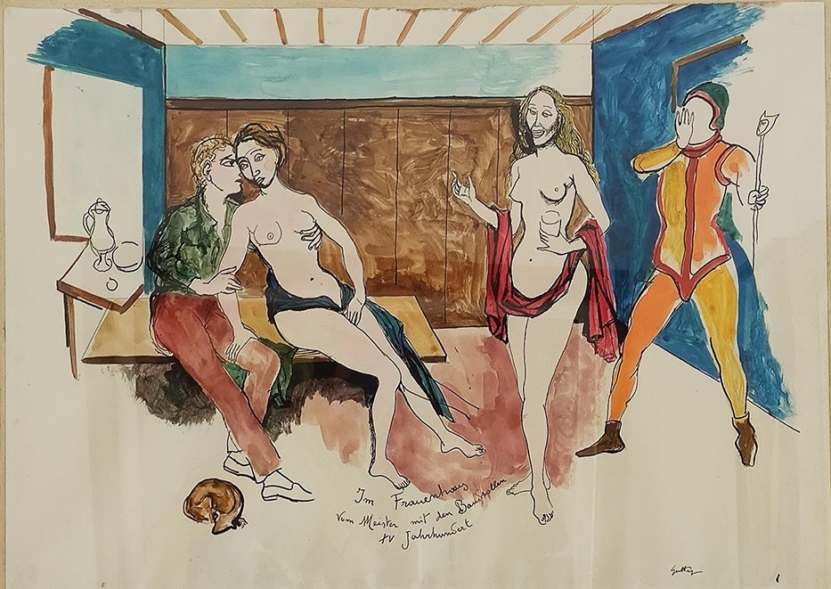 Renato Guttuso Tecnica mista su cartoncino 51x71,3 Im frauenhaus Von Meister mit den Baudrollen XV Jahrundert 1971 Archivio Carapezza