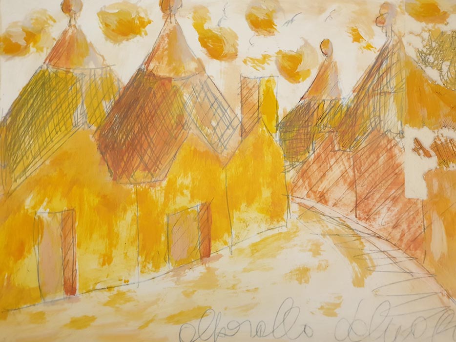 Salvo Tecnica mista su carta intelata 18x24 Alberobello 2006 Autentica dell'Archivio
