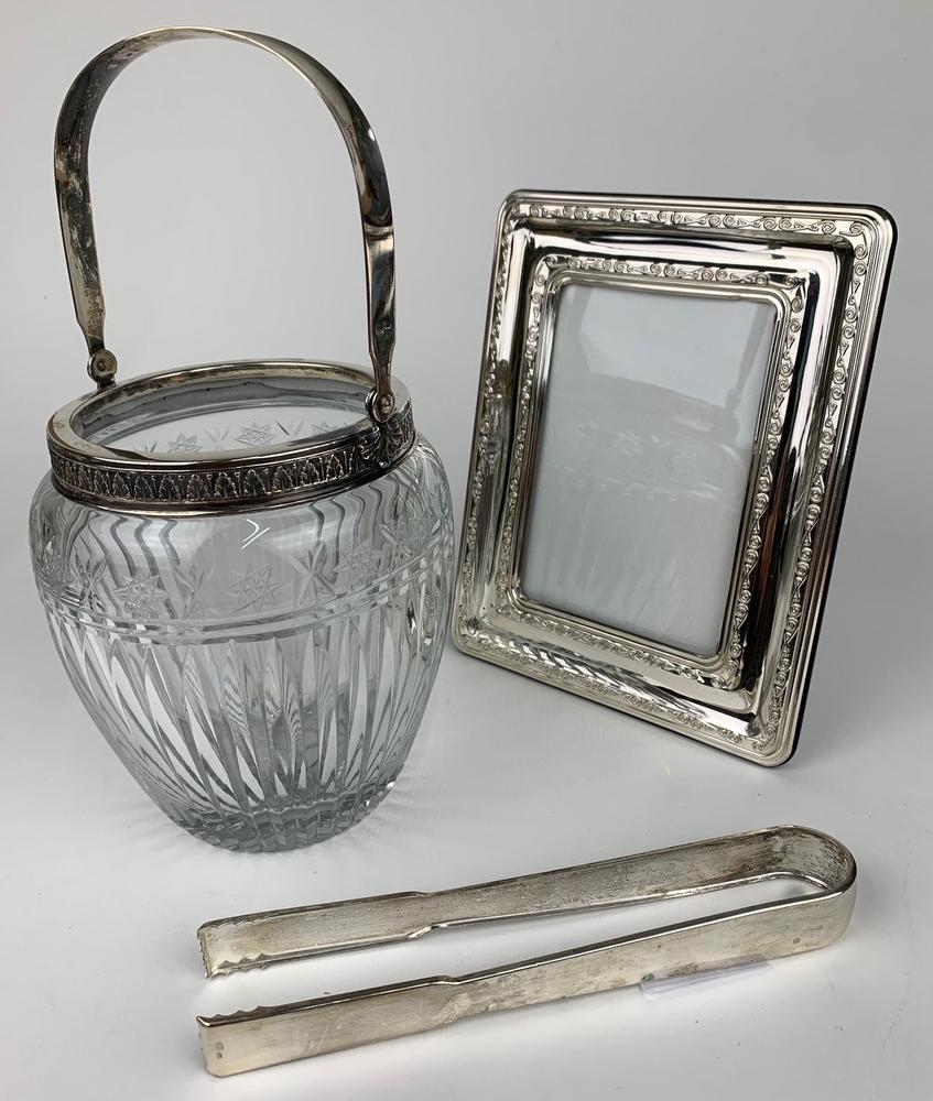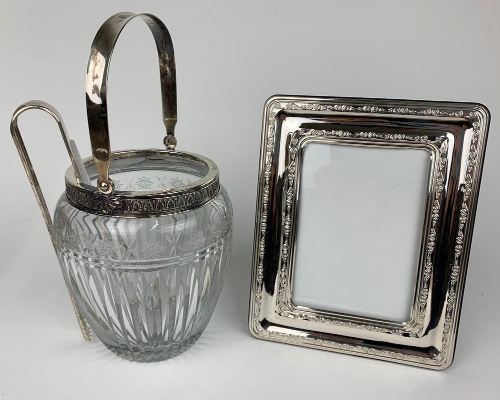 LOTTO COMPOSTO DA SECCHIELLO PORTAGHIACCIO IN CRISTALLO E CORNICE IN ARGENTO 925