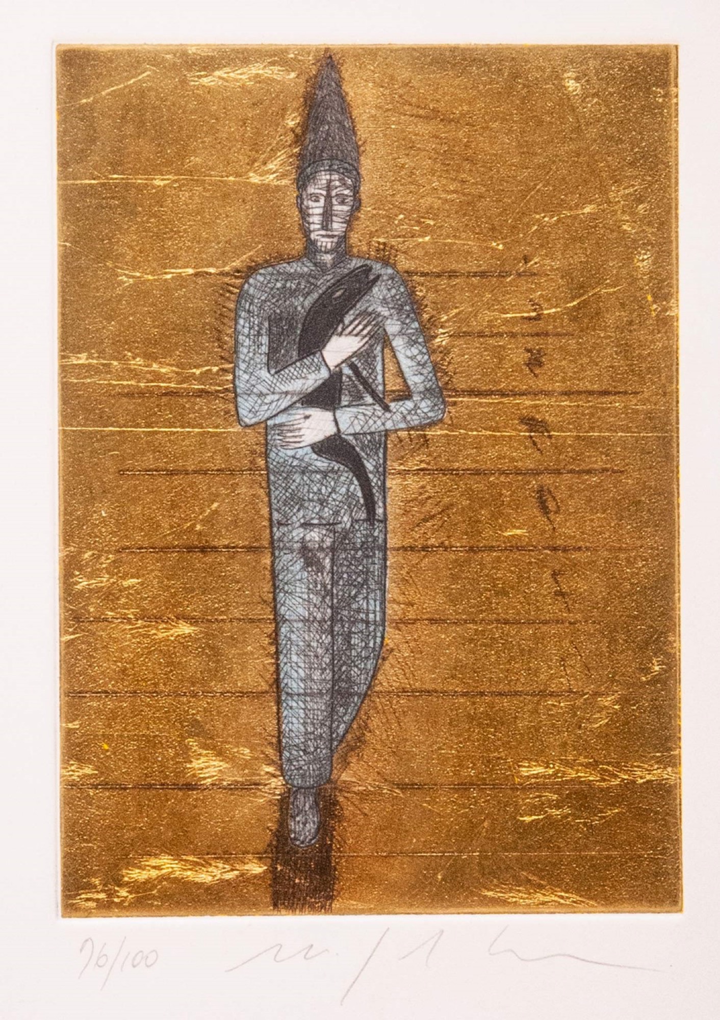 4 incisioni all’acquaforte acquatinta serigrafia e foglia d’oro, ess. 96/100 (dalla tiratura di 100 esemplari in numeri arabi, XXV esemplari romani, 15 P.A. e 10 esemplari H.C.)