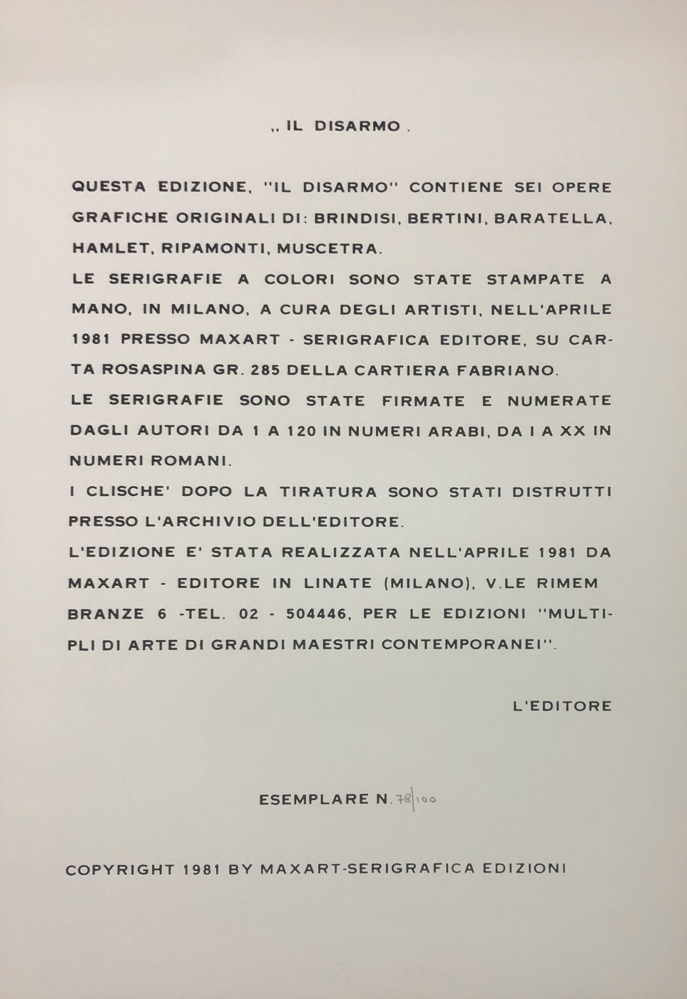 Lot 29 | AUTORI VARI - Il disarmo, 1981