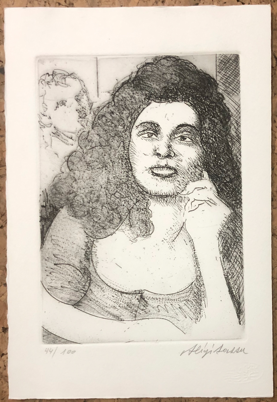 Il catalogo rientra nelle prime 100 copie realizzate e contiene al suo interno un'acquaforte di Aligi Sassu, foglio cm 23x16, recante firma e numerazione (Esemplare 44/100) a matita e timbro a secco de La Scaletta al fronte