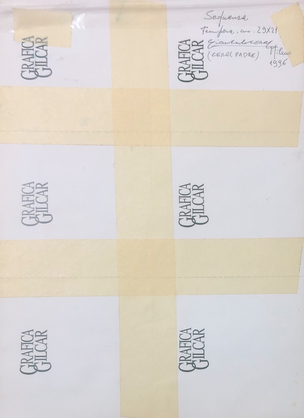 Firma, titolo, datazione, misure, tecnica e località (Milano) al retro
