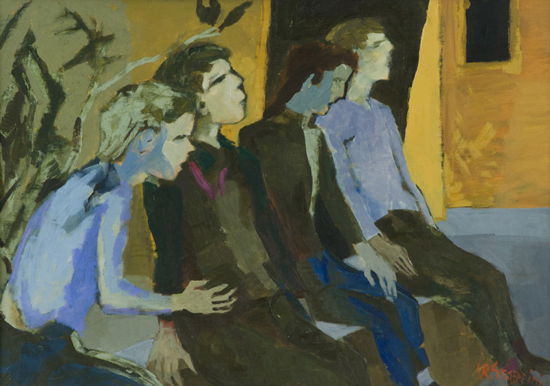 Renzo Grazzini Figure Olio su tavola, cm. 50x70 Firmato in basso a destra. Sul verso: etichetta e timbri "Galleria d'Arte Giada", Castiglioncello, Livorno.