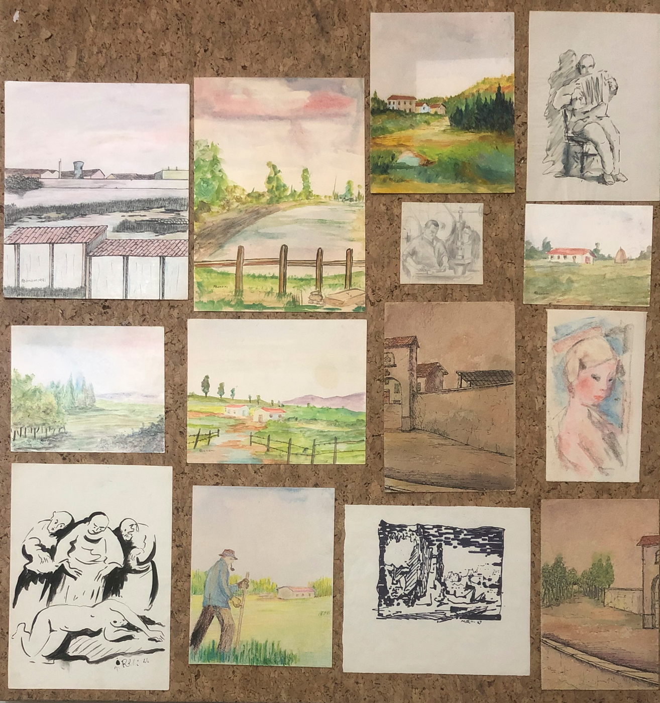 Lotto unico composto da 14 tecniche miste su carta, molte delle quali recanti firme indecifrate