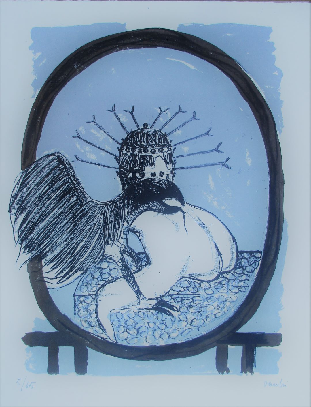 Sergio Vacchi Studio per la celebrazione di Michelangelo, 1966 Litografia su carta, 66,5 x 50,5, Galleria Wolfgang Ketterer Münnchen, Stampata da Il Torcoliere in Roma
