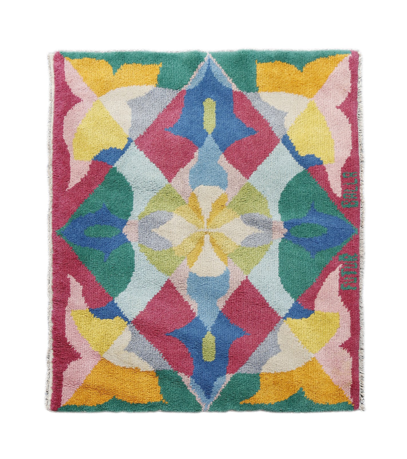 BALLA GIACOMO (1871 - 1958). Tappeto '' Fiori + Spazio''.. Lana annodata a mano; disegnato negli anni 1925-1930, realizzato negli anni 80. Firma "Futur Balla" in basso. 99 esemplari. Pubblicazioni: Cent’anni Di Futurismo 1909/2009, Catalogo della mostra all''Associazione Cutlurale Piazza Dante, Città Di Giulianova, 2009. . Tappeto. Cm 175,00 x 240,00.