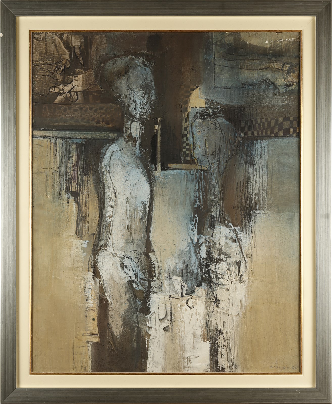 BIONDA MARIO (1913 - 1985). Senza titolo.. Firma e anno in basso destra. Provenienza: Meeting Art Casa d'aste, Vercelli.. Tecnica mista e collage su tela. Cm 73,00 x 93,00. 1966
