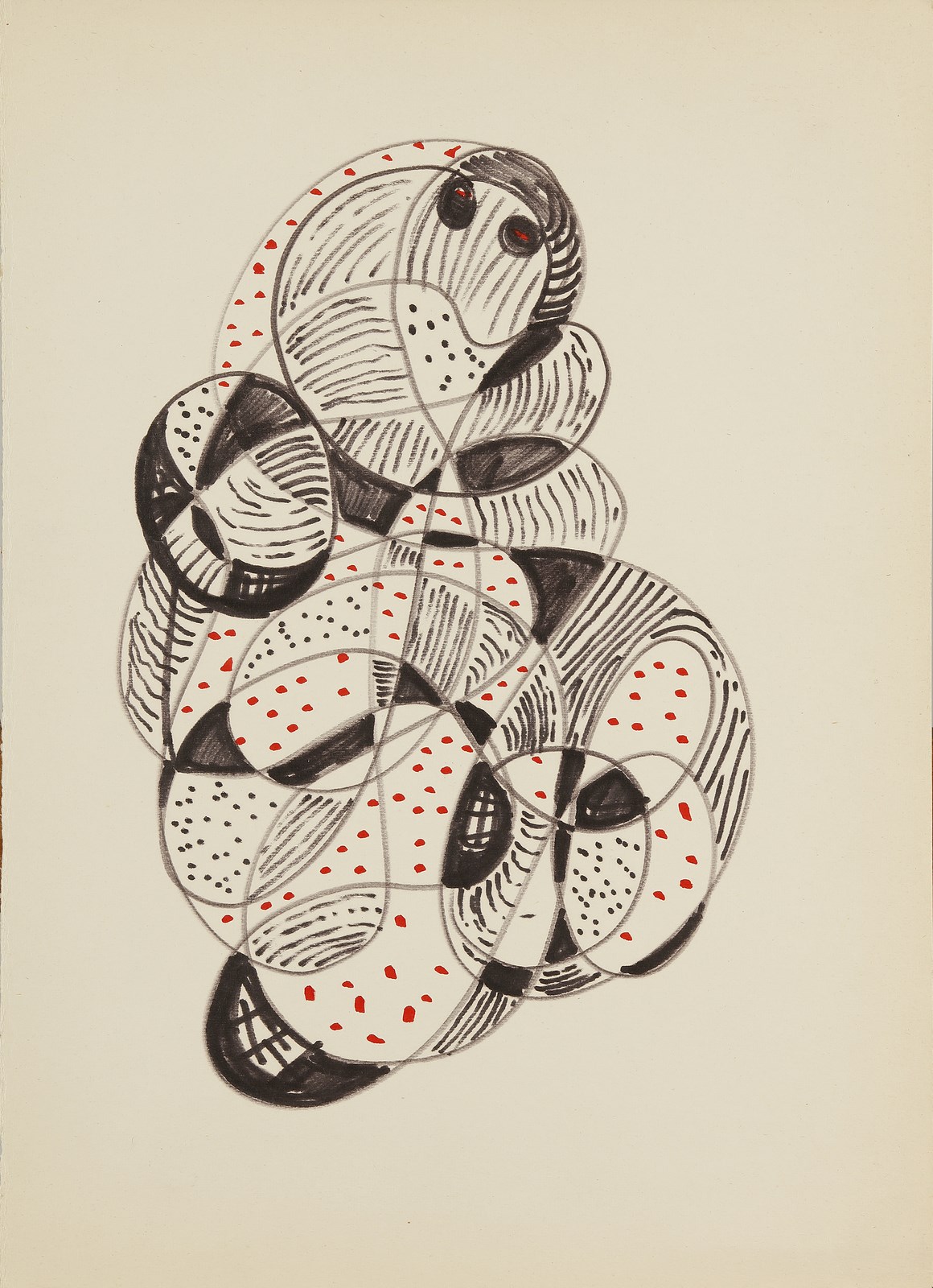 MUNARI BRUNO (1907 - 1998). Senza titolo.. Autentica su fotografia di Alberto Munari. Anni'50.. Pennarelli su carta. Cm 24,00 x 33,50.