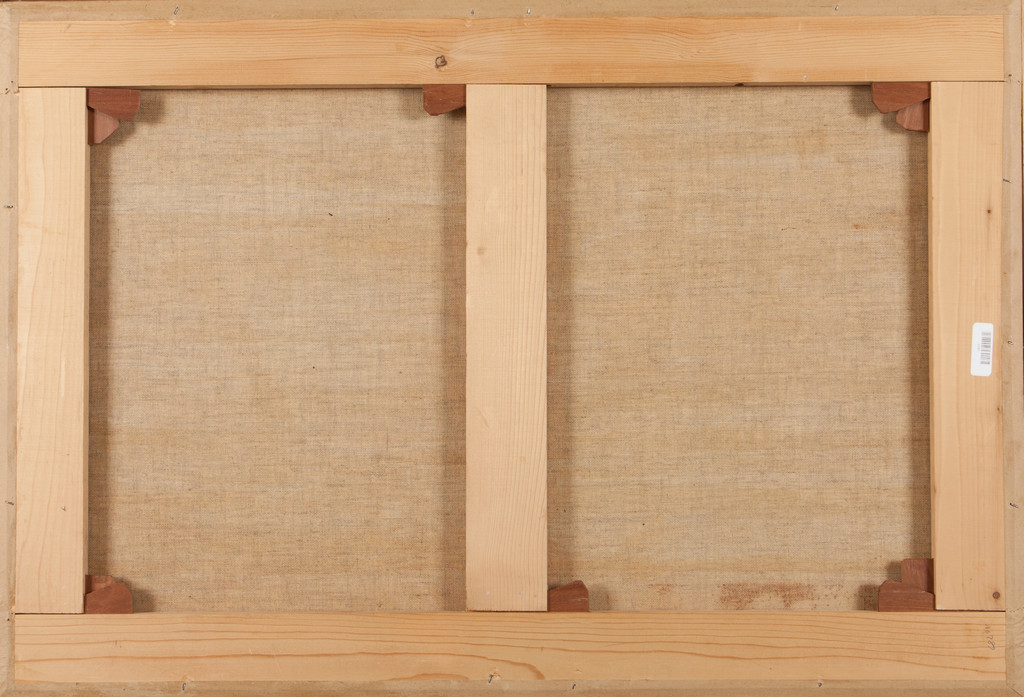 mixed media on cardboard laid on canvas 39 37x27 55 in