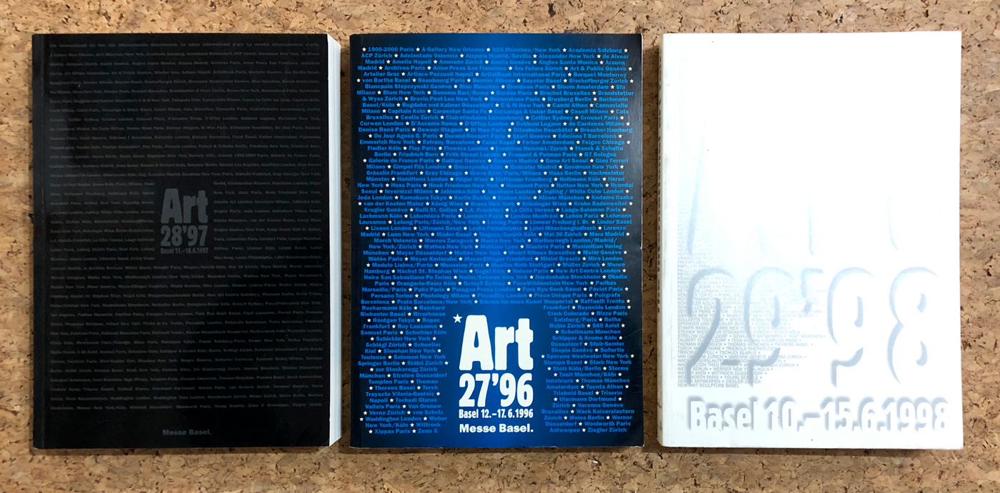 Lotto unico di 3 cataloghi riccamente illustrati relativi alla più importante manifestazione fieristica legata all'arte moderna e contemporanea: Art Basel, Basilea: