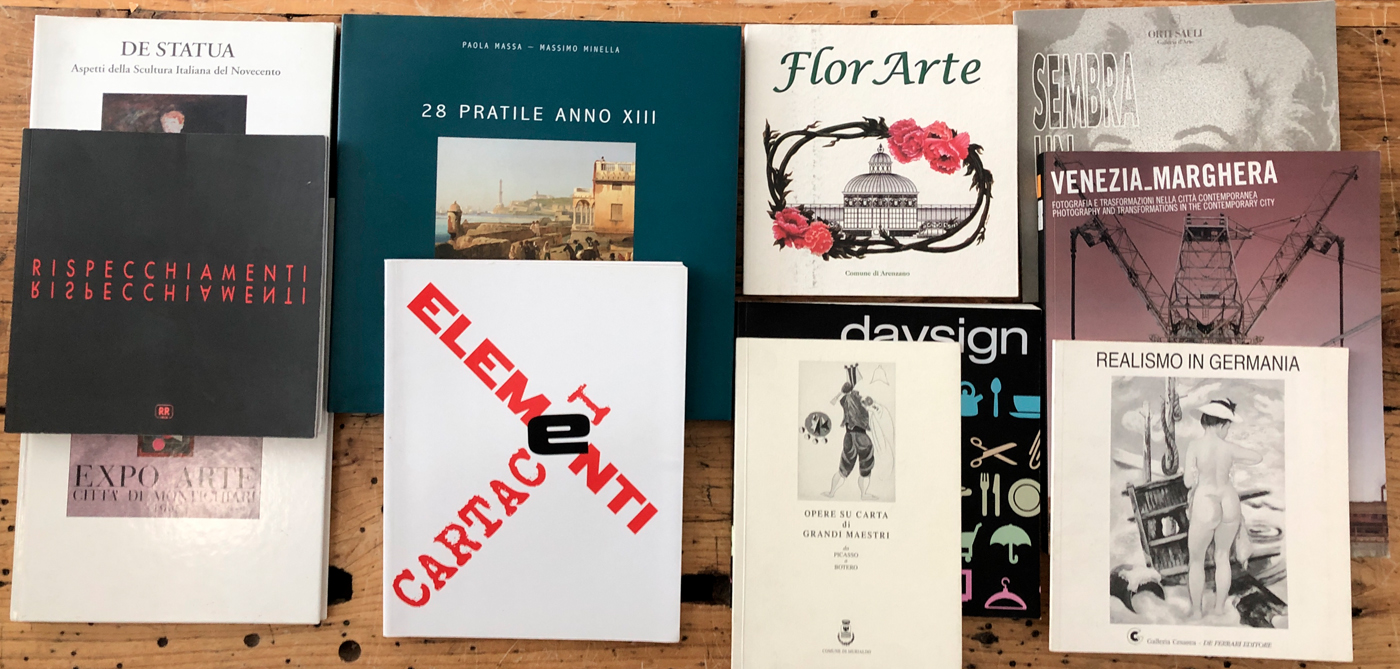 - Elementi cartacei, 2018: catalogo riccamente illustrato relativo all'esposizione tenutasi presso Polo Culturale, Viterbo (opere dei principali artisti italiani e internazionali del dopoguerra, principalmente Pop)