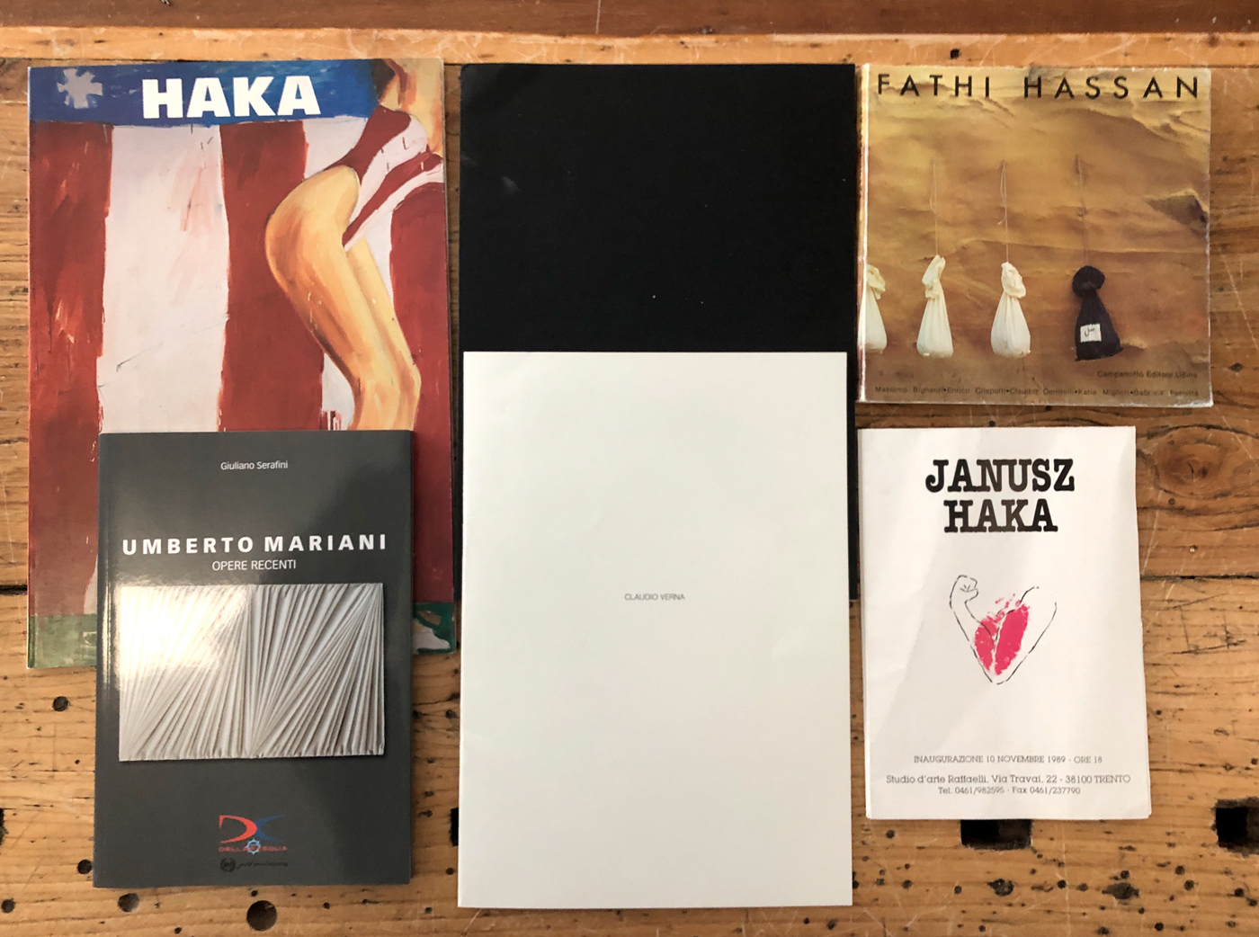 Si allega un pieghevole illustrato della mostra personale di Janusz Haka tenutasi presso studio Raffaelli, Trento, 1989