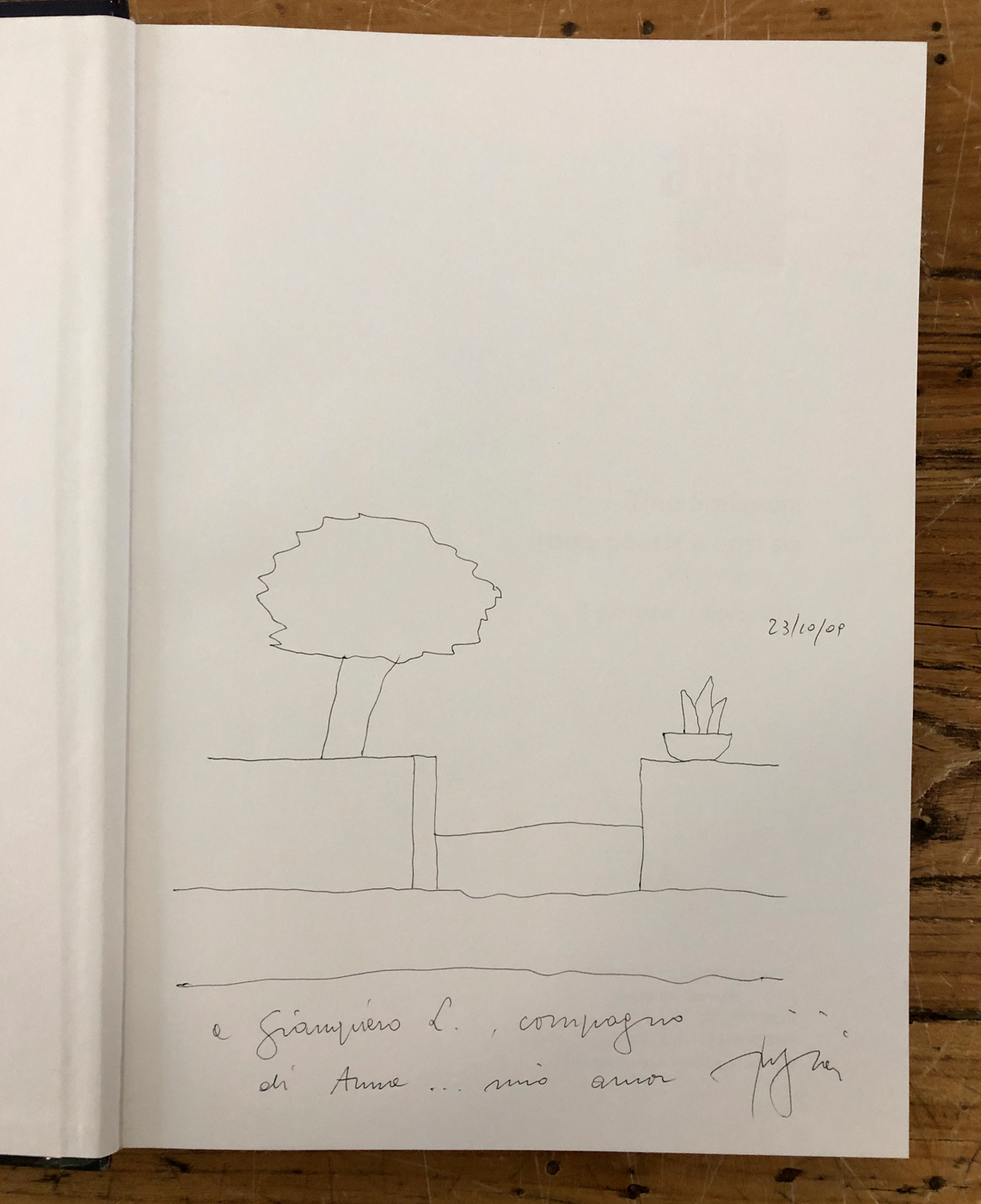 Il catalogo reca all'interno un disegno a biro firmato, datato (23/10/09) e dedicato