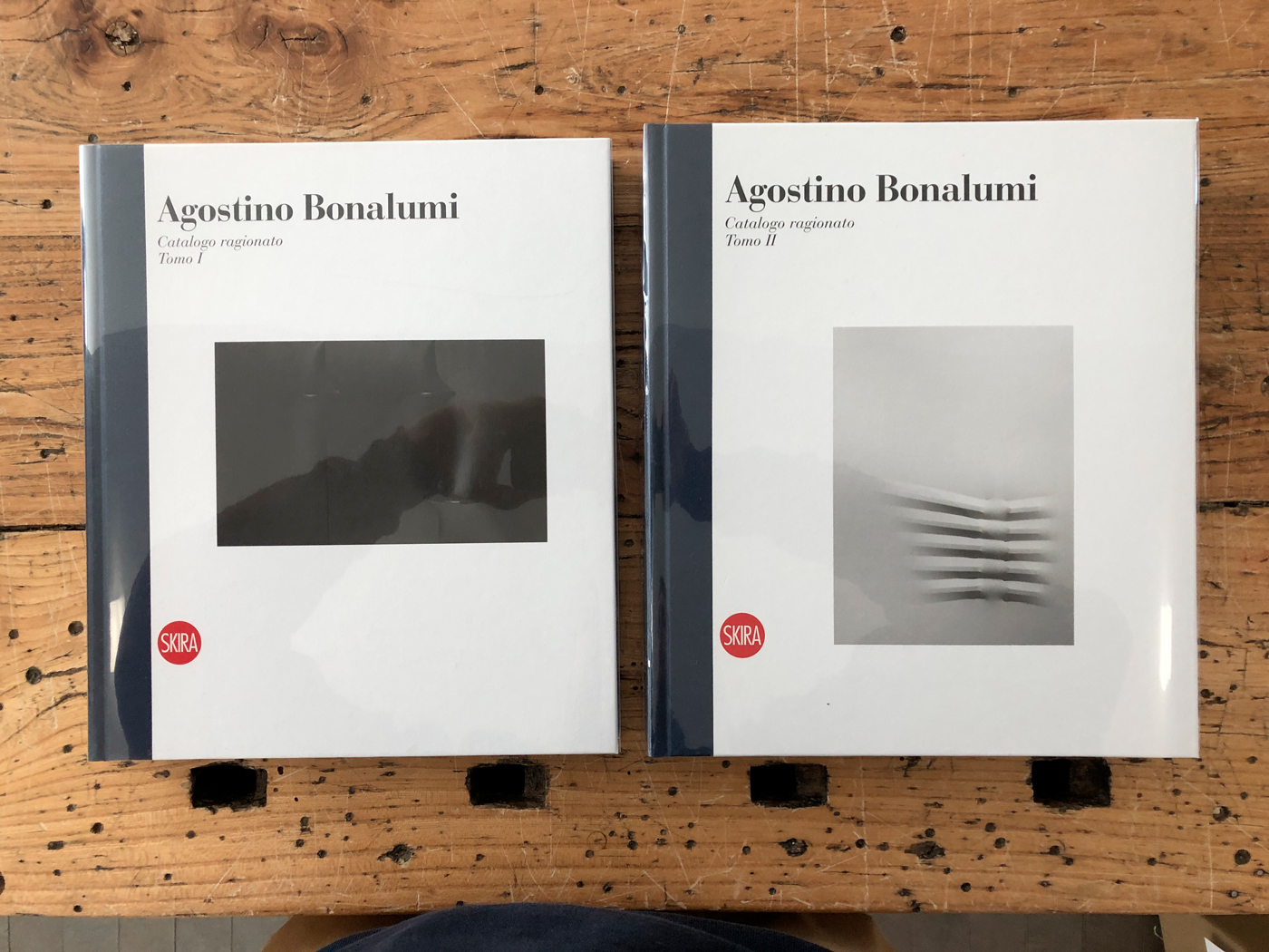 Lotto unico di 2 cataloghi ragionati delle opere di Agostino Bonalumi (Catalogo ragionato. Tomo primo e Catalogo ragionato. Tomo secondo), a cura di Fabrizio Bonalumi e Marco Meneguzzo