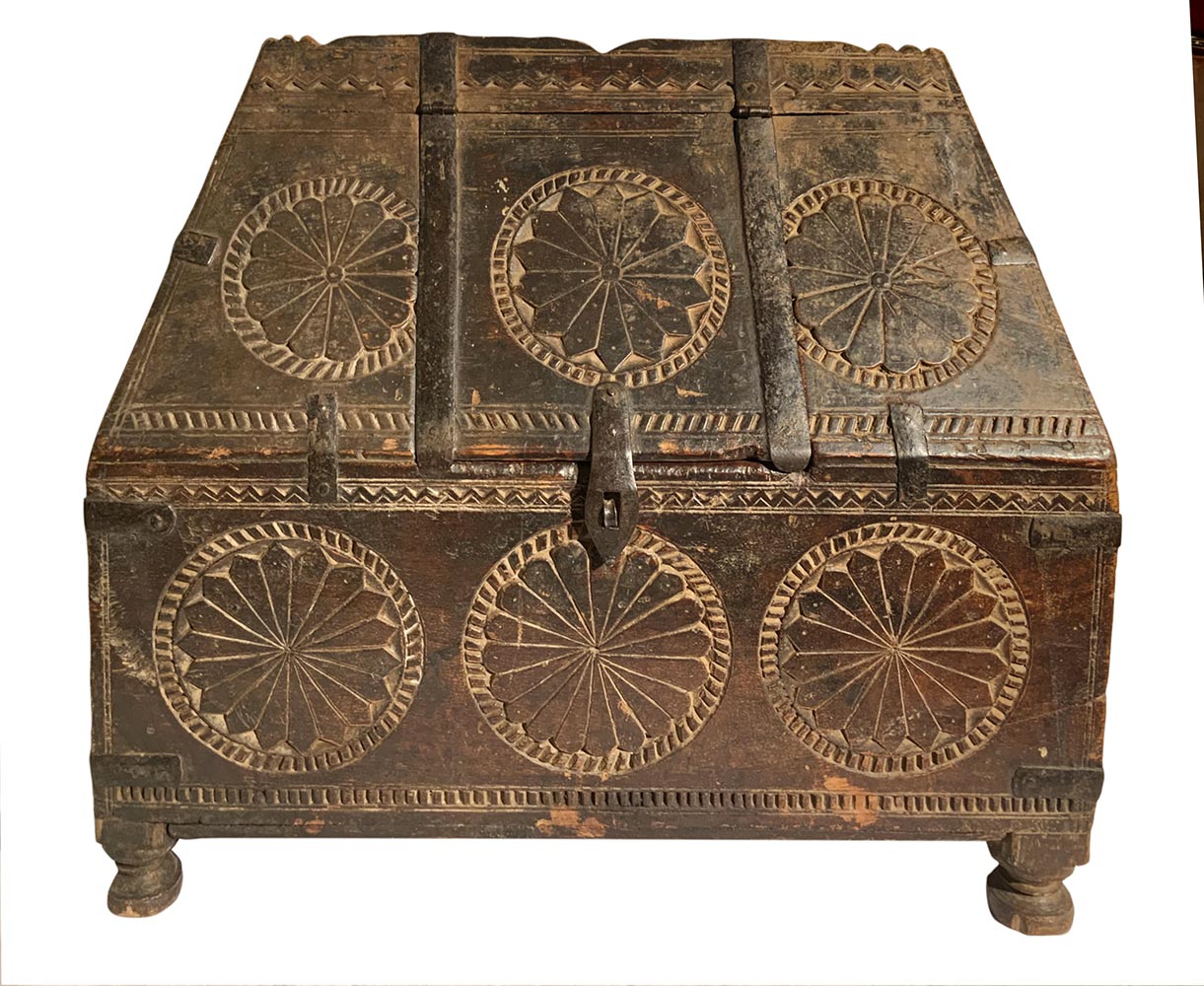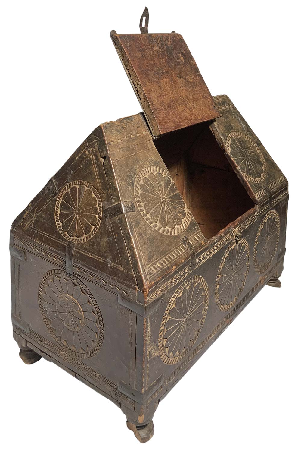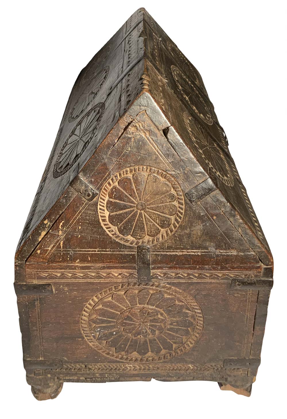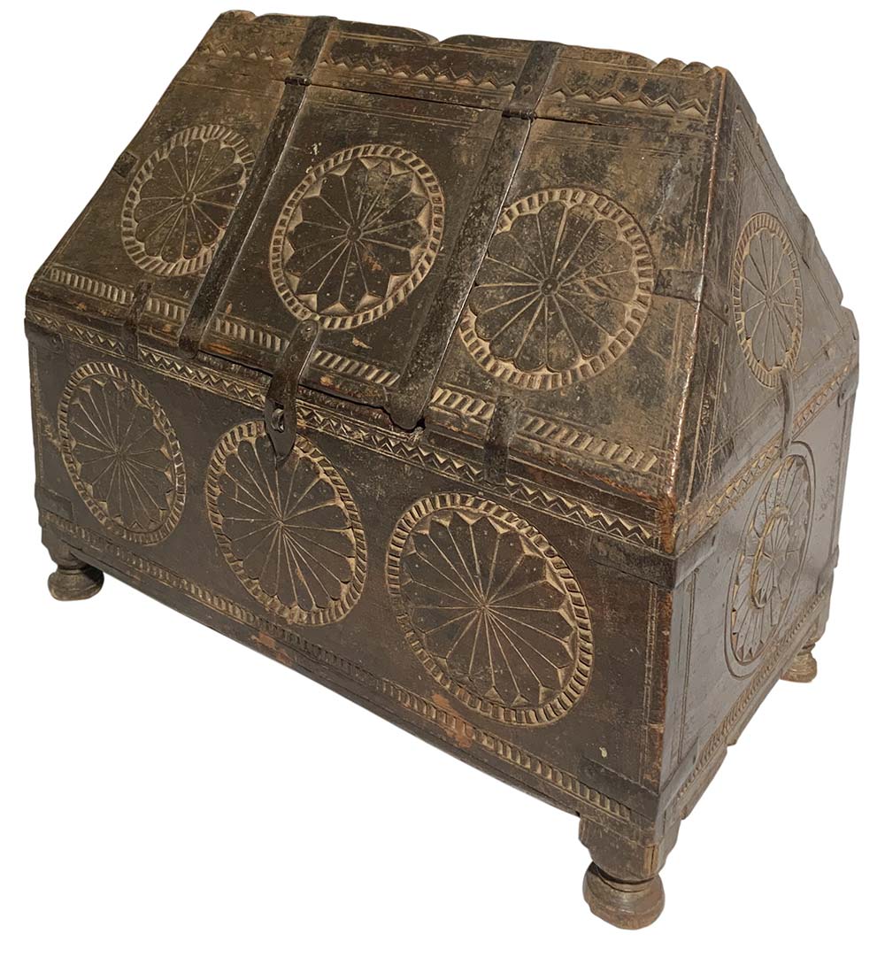 Lot 34 | Scrigno in legno intagliato, XVI secolo. H cm 40X43X23,