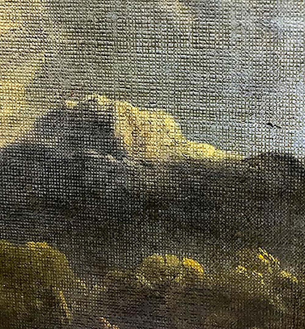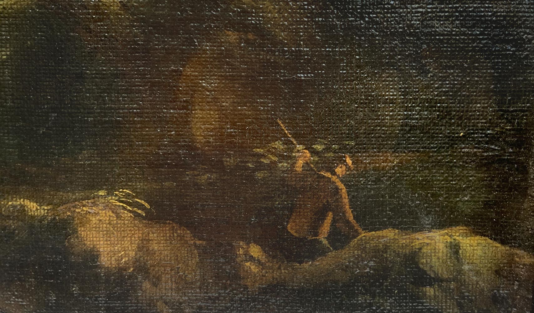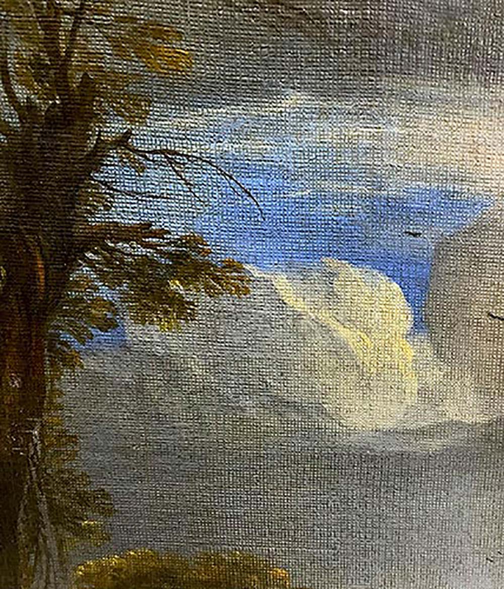 Pittore italiano del XVII secolo. Paesaggio al tramonto. 97,5X87, olio su tela.
