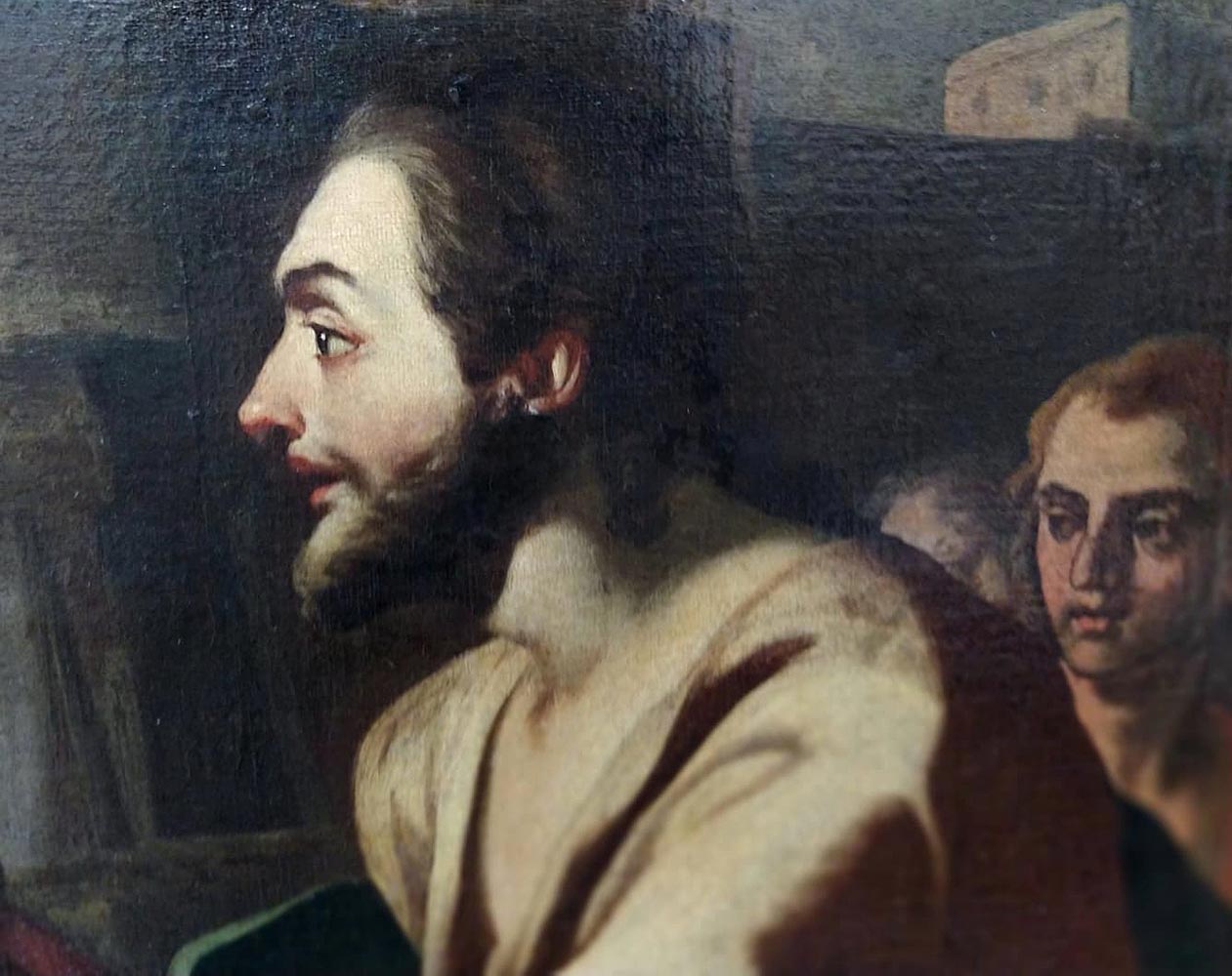 Condusse le prime esperienze pittoriche nella bottega paterna - Angelo Solimena fu tra i più intelligenti epigoni della tradizione naturalistica napoletana, la quale si era venuta sviluppando nelle particolari soluzioni soprattutto di Francesco Guarino - come documentano le primissime opere di lui note, come la pala con la visione di S. Cirillo d'Alessandria in San Domenico a Solofra (a pochi chilometri da Avellino), peraltro realizzata proprio in collaborazione col padre. A questo momento di evidenti suggestioni guariniane, nate appunto dall’insegnamento di Angelo, possono datarsi tuttavia già i segni di un primo interesse, perquanto marginale, per l’opera giovanile di Luca Giordano, evidenziabile ad esempio nella Disputa di Gesù tra i dottori di collezione Morano a Napoli, senza che, in ogni caso, queste riflessioni di natura giordanesca modificassero in qualcia connaturata inclinazione ad un fare antichizzante e quindi sostanzialmente legato ad una resa naturalistica delle immagini. E’ durante questo primo periodo di apprendistato che dovrebbe esser stata prodotta la tela in esame, tesi suffragata dal fatto che il Solimena riprenderà e l'impostazione del nostro dipinto e la gestualità in altre due tele di cui la prima trovasi a Venezia nelle Gallerie dell'Accademia e raffigura Rebecca e Eleazer."Expertise Andrea Morra.