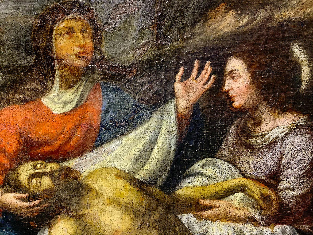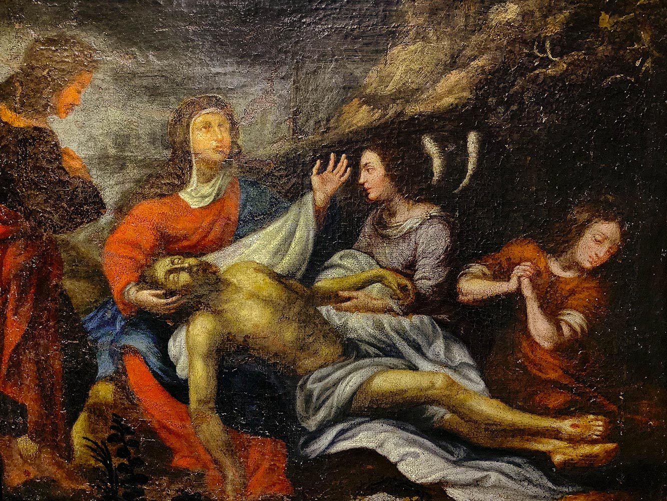 Pittore della fine XVII secolo. Compianto di Cristo con le tre Marie e San Giovanni. 31x38, olio su tela.