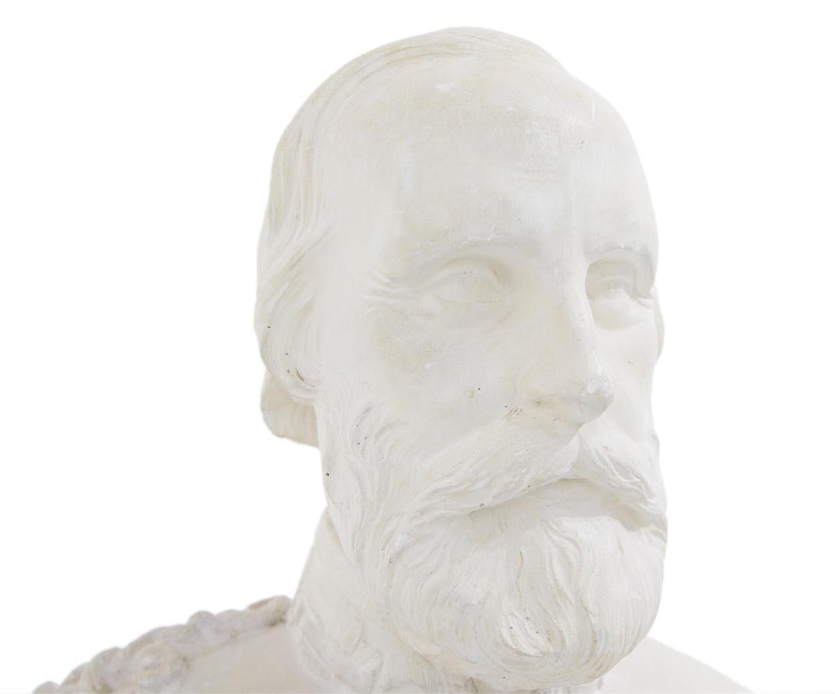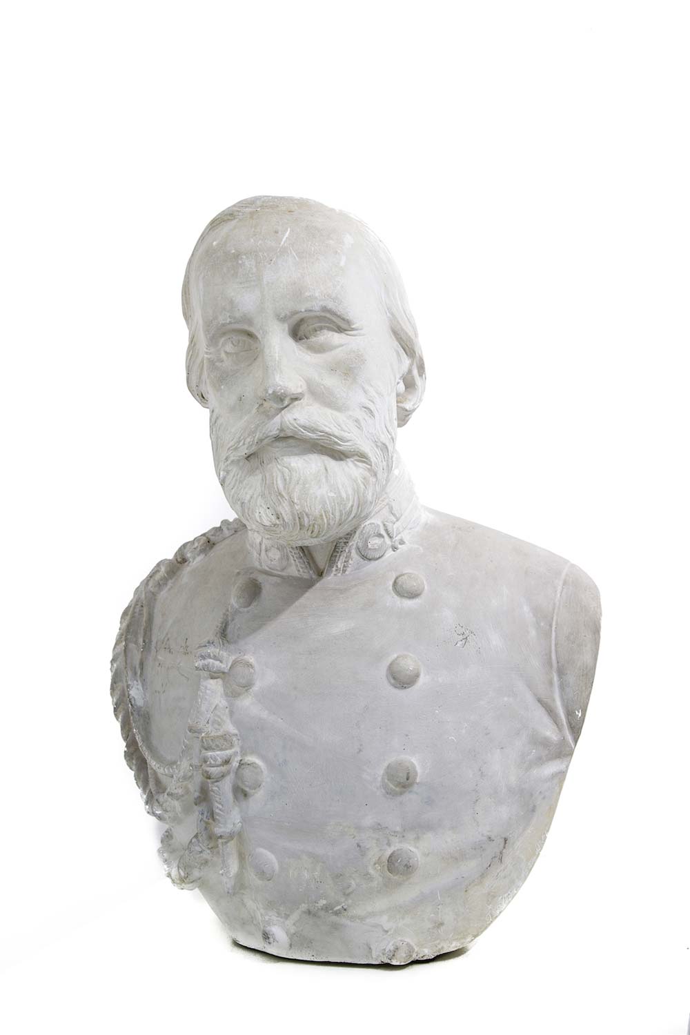 Benedetto De Lisi (Palermo,1831 – Palermo, 1875). Calco in gesso di Garibaldi. Busto in gesso. Calco bronzo. H cm 65. Firmato e datato in basso a destra 1860