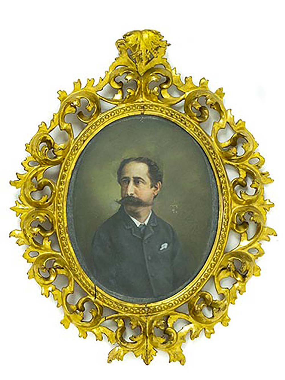 Pittore del XIX secolo. Uomo con baffi. Importante cornice dorata a foglia. 56X44, olio su tela.