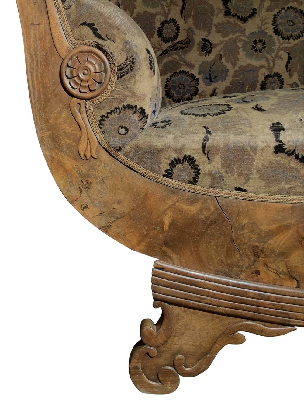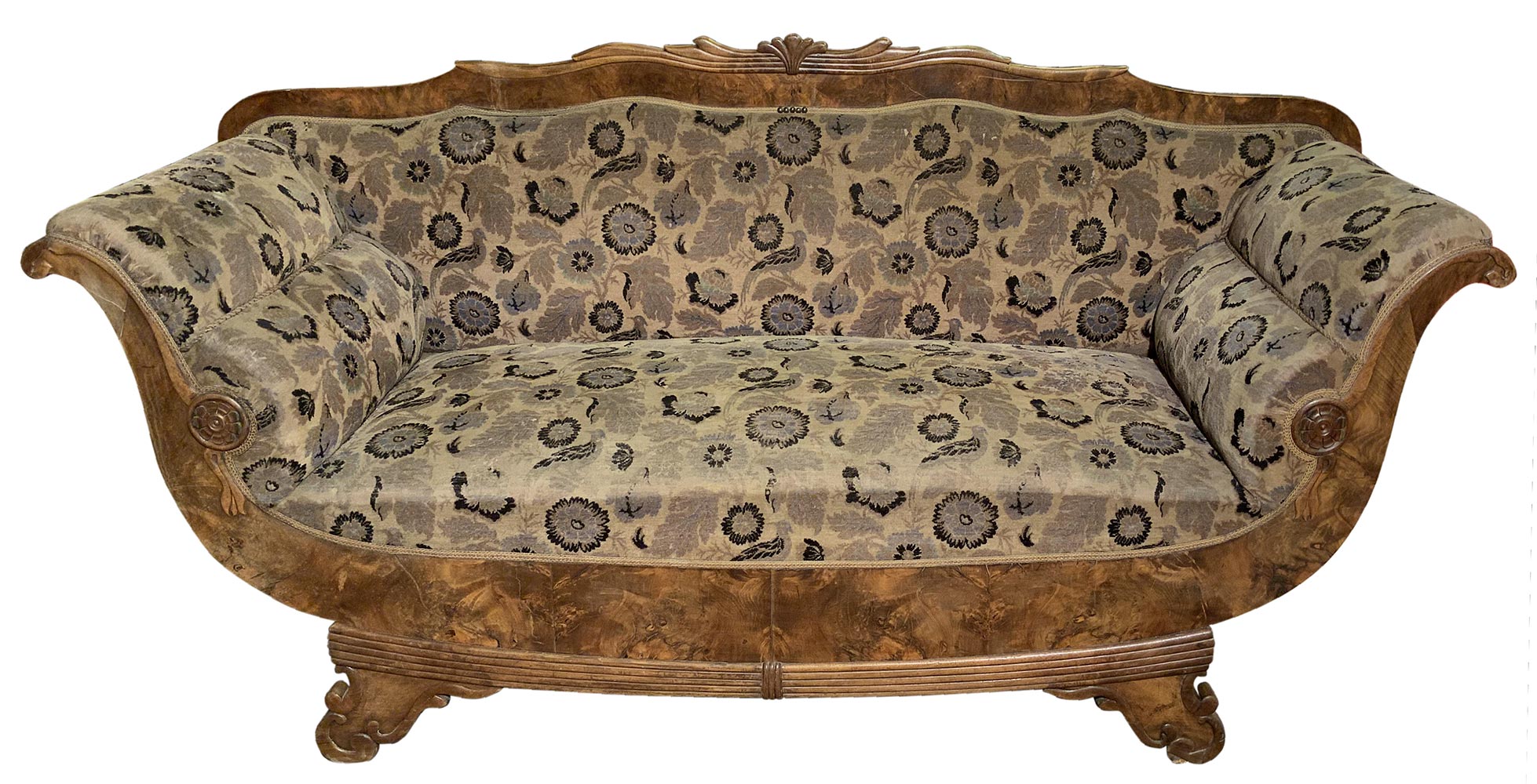 Lot 174 | Divano Biedermaier, inizi XIX secolo. In radica di noce. H cm 104x210.