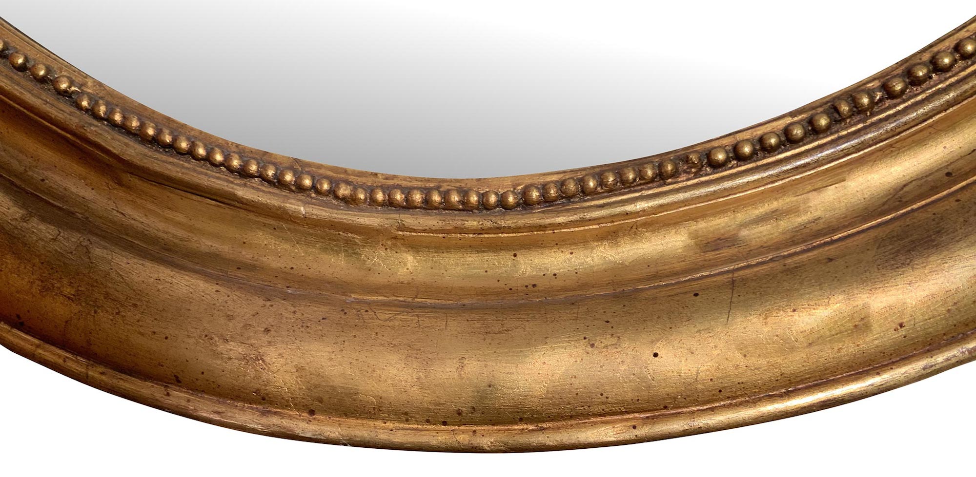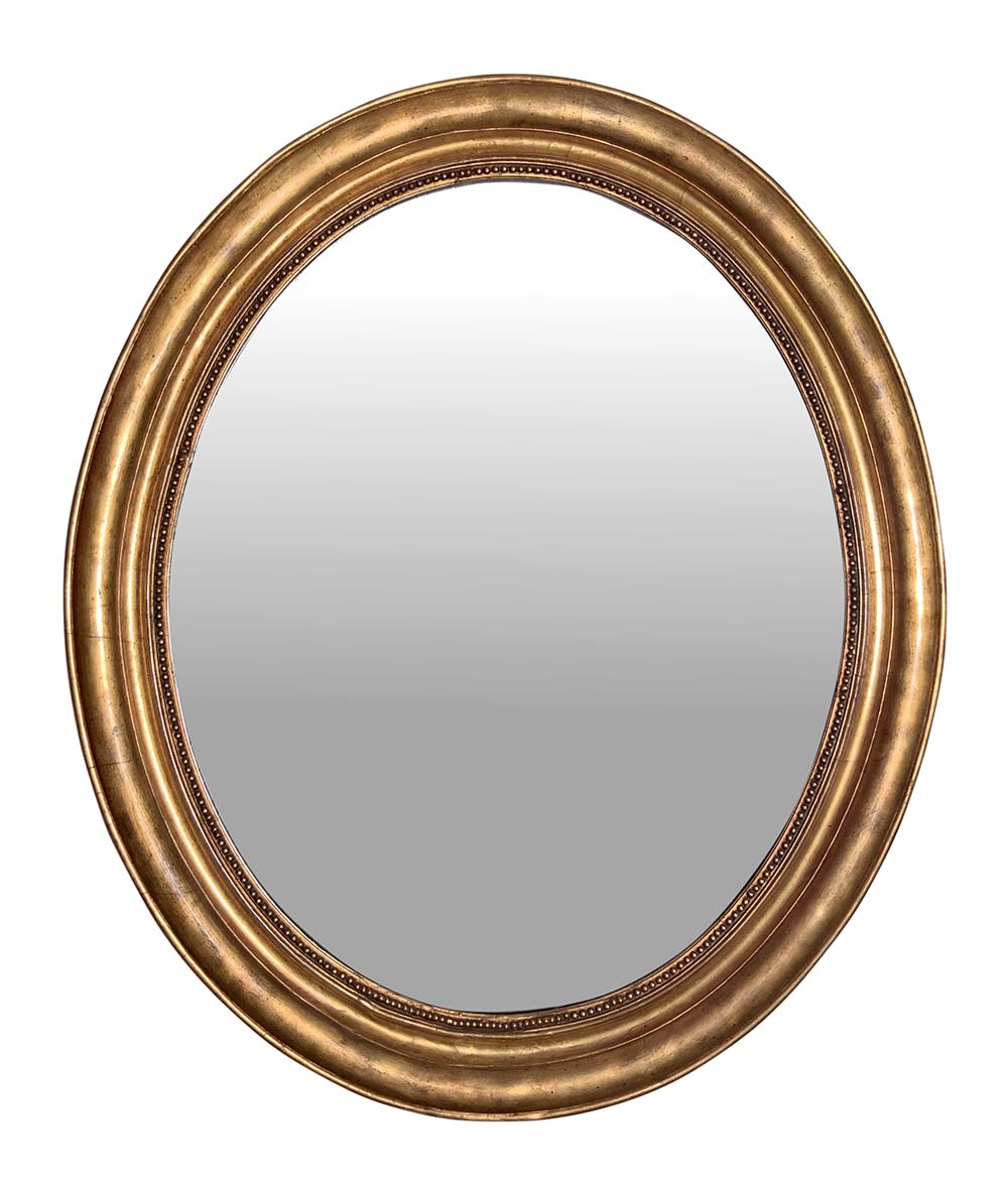 Specchiera ovale, inizi XX secolo. In cornice di legno dorata. Cm 118x100.