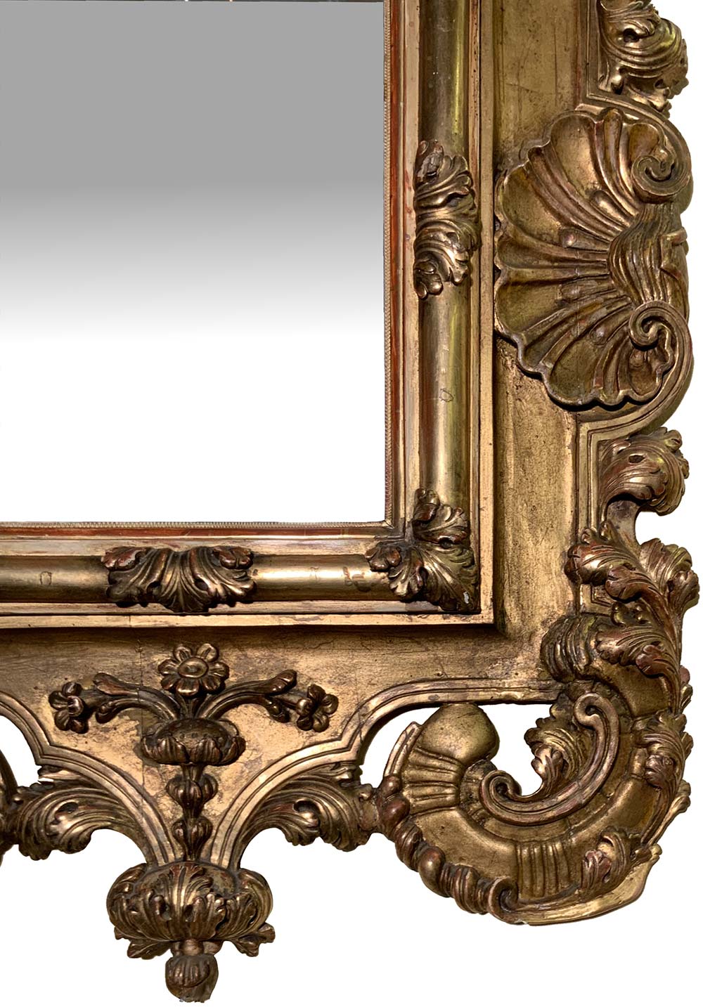Specchiera, XIX secolo. In cornice di legno dorata e scolpita. Cm 118x100.