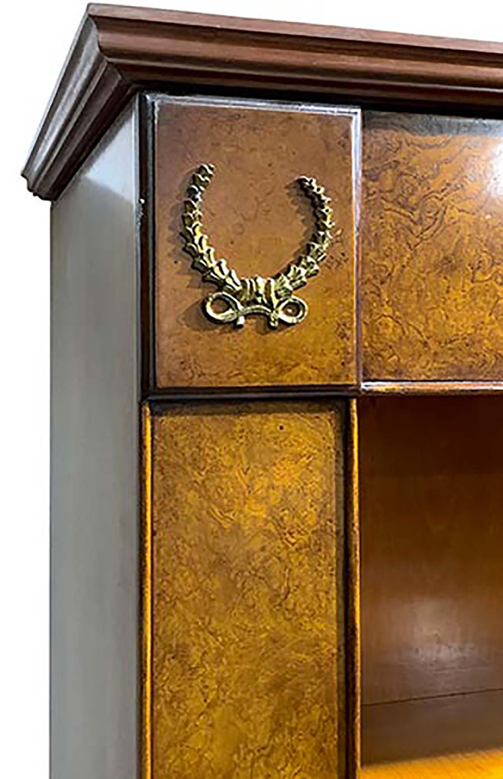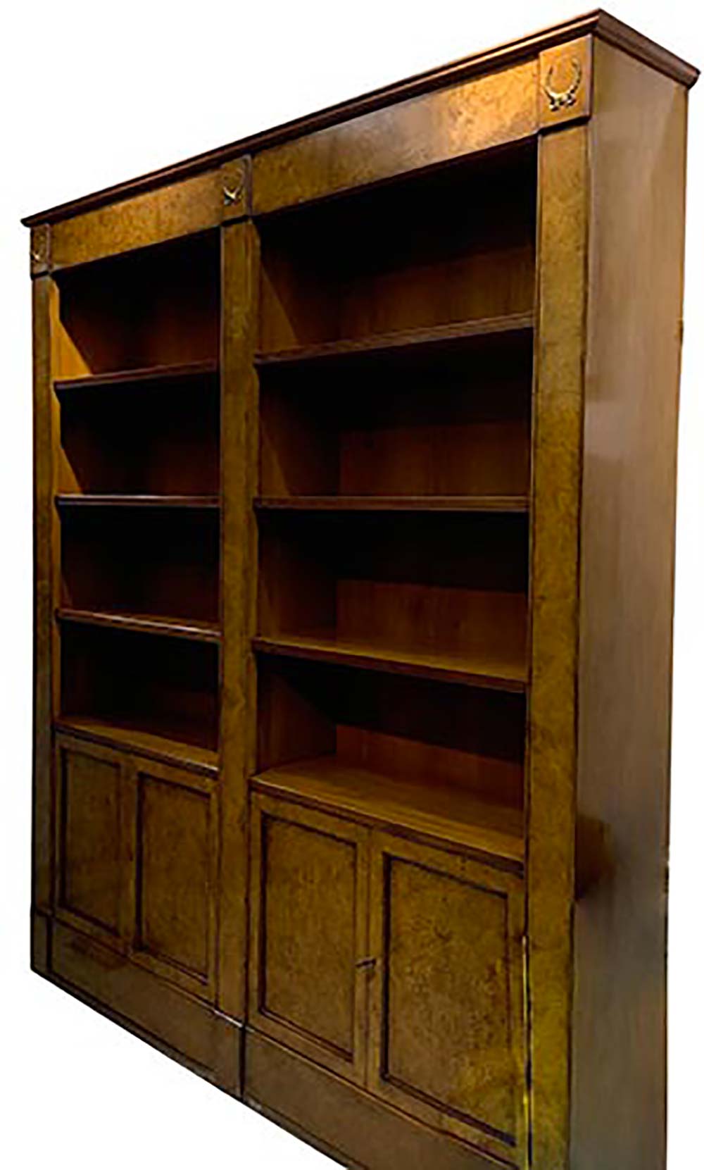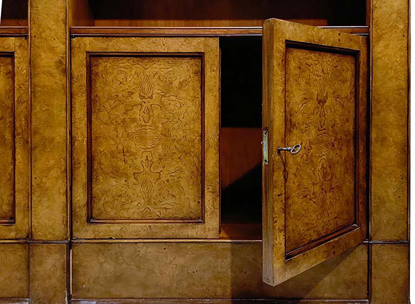 Libreria degli inizi del XX secolo. A doppio corpo in legno di radica chiara...