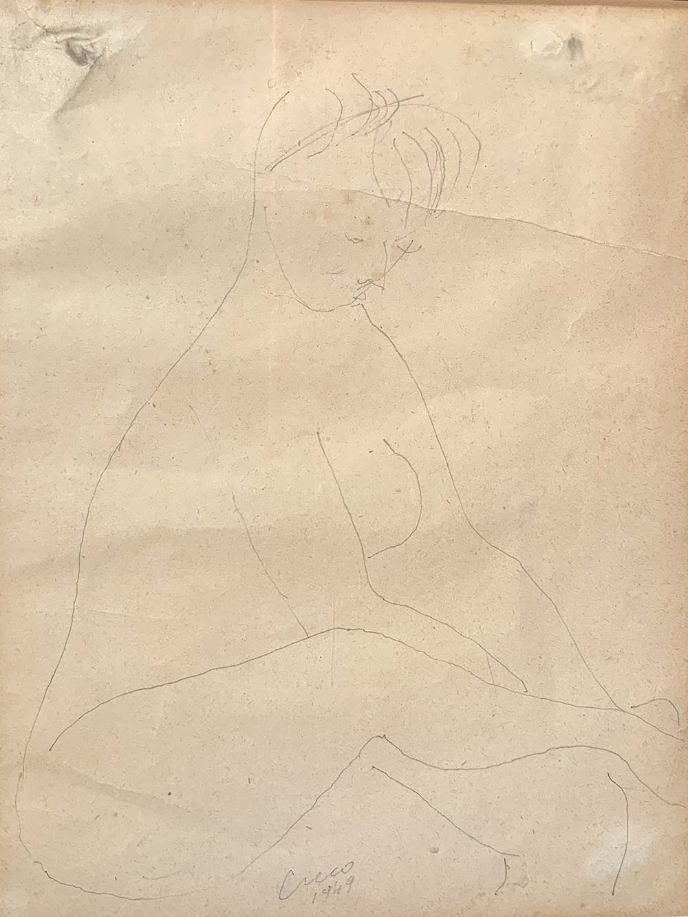 Emilio Greco (Catania, 1913-Roma,1995). Nudo di donna.22x16,5, disegno a matita su carta. Firmato al centro e datato 1969.