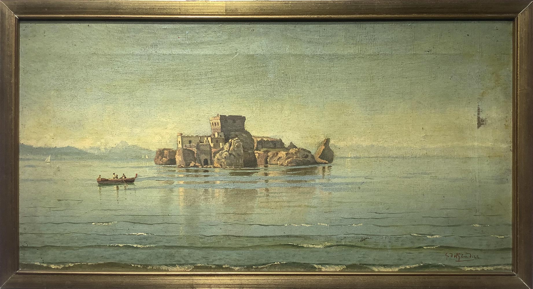 Lot 208 | Elvira Del Giudice. Castello sul mare. 25x50, olio su tela. Firmato in basso...