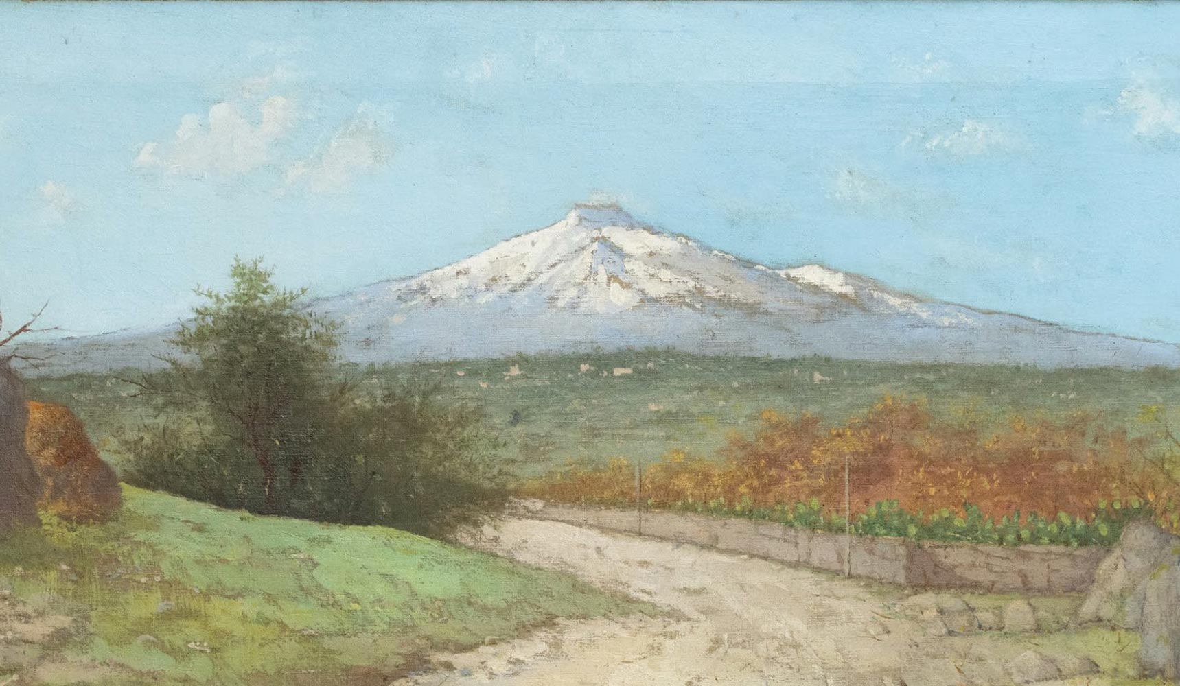 G. Cajani. XIX/XX secolo. Paesaggio con Etna. 42X64,5, olio su tela.