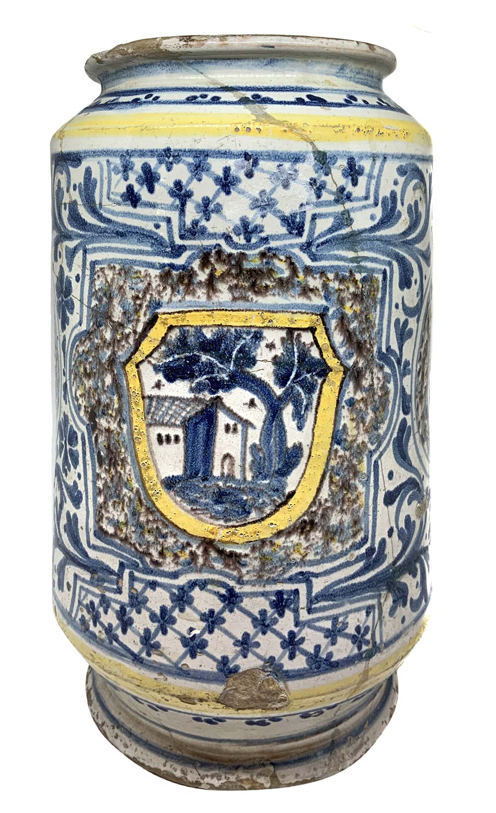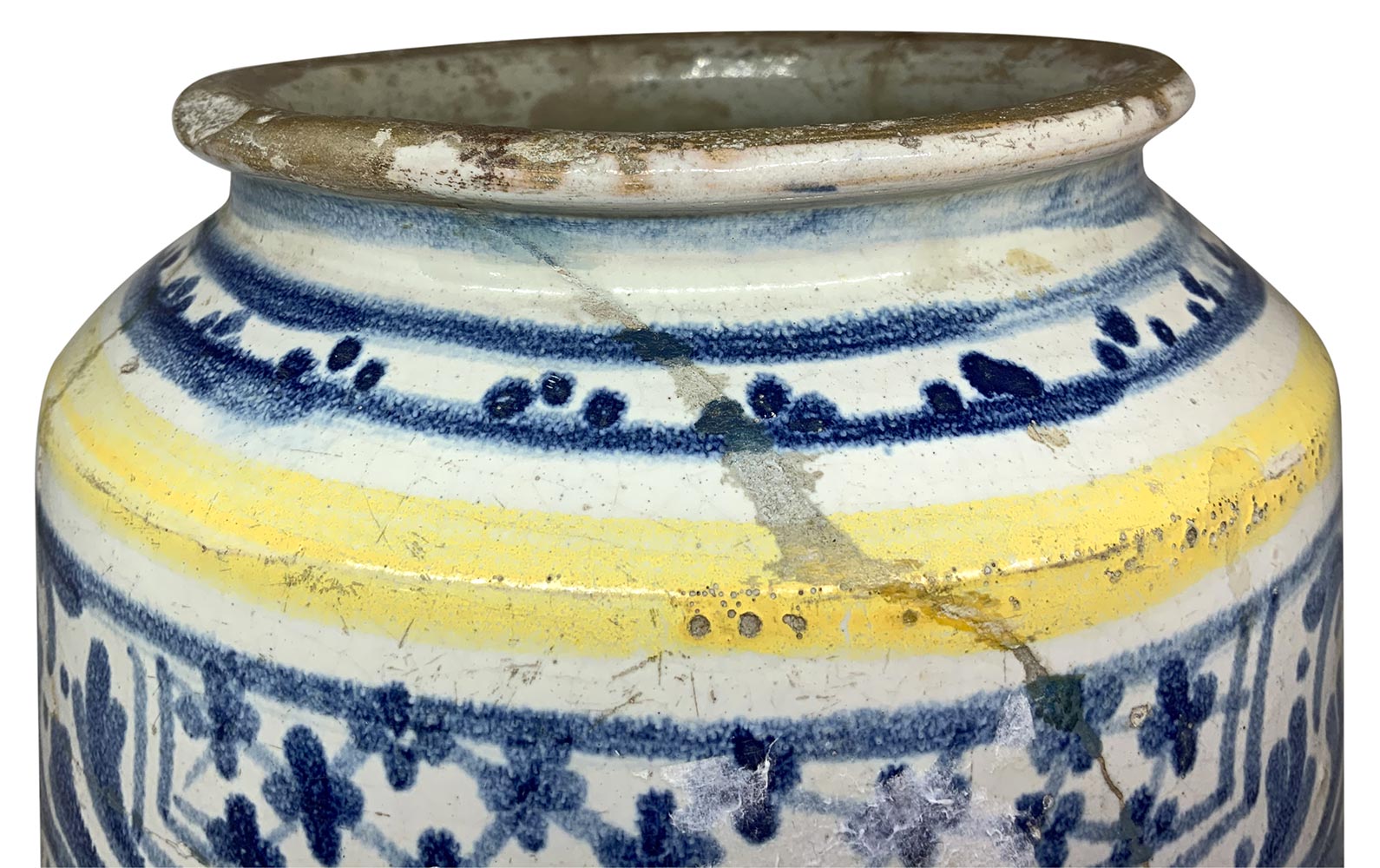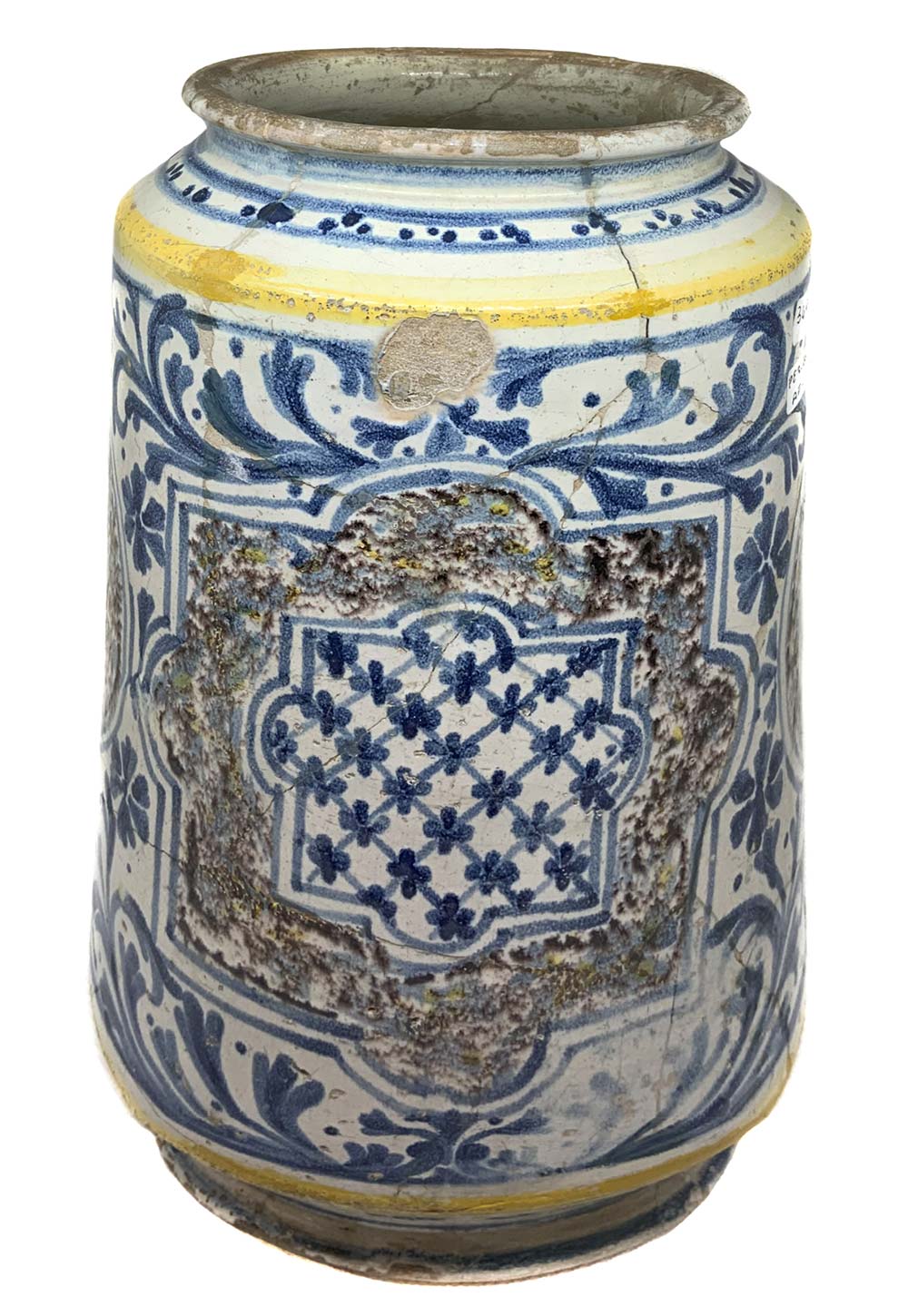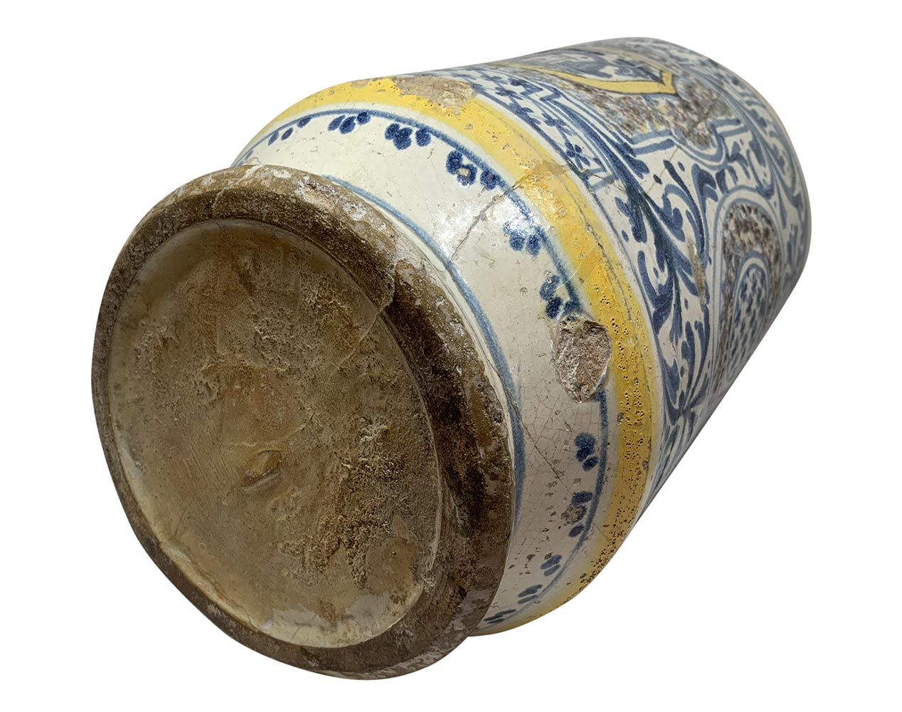Cilindro in maiolica di Caltagirone, Sicilia XVIII secolo. A fondo bianco con...