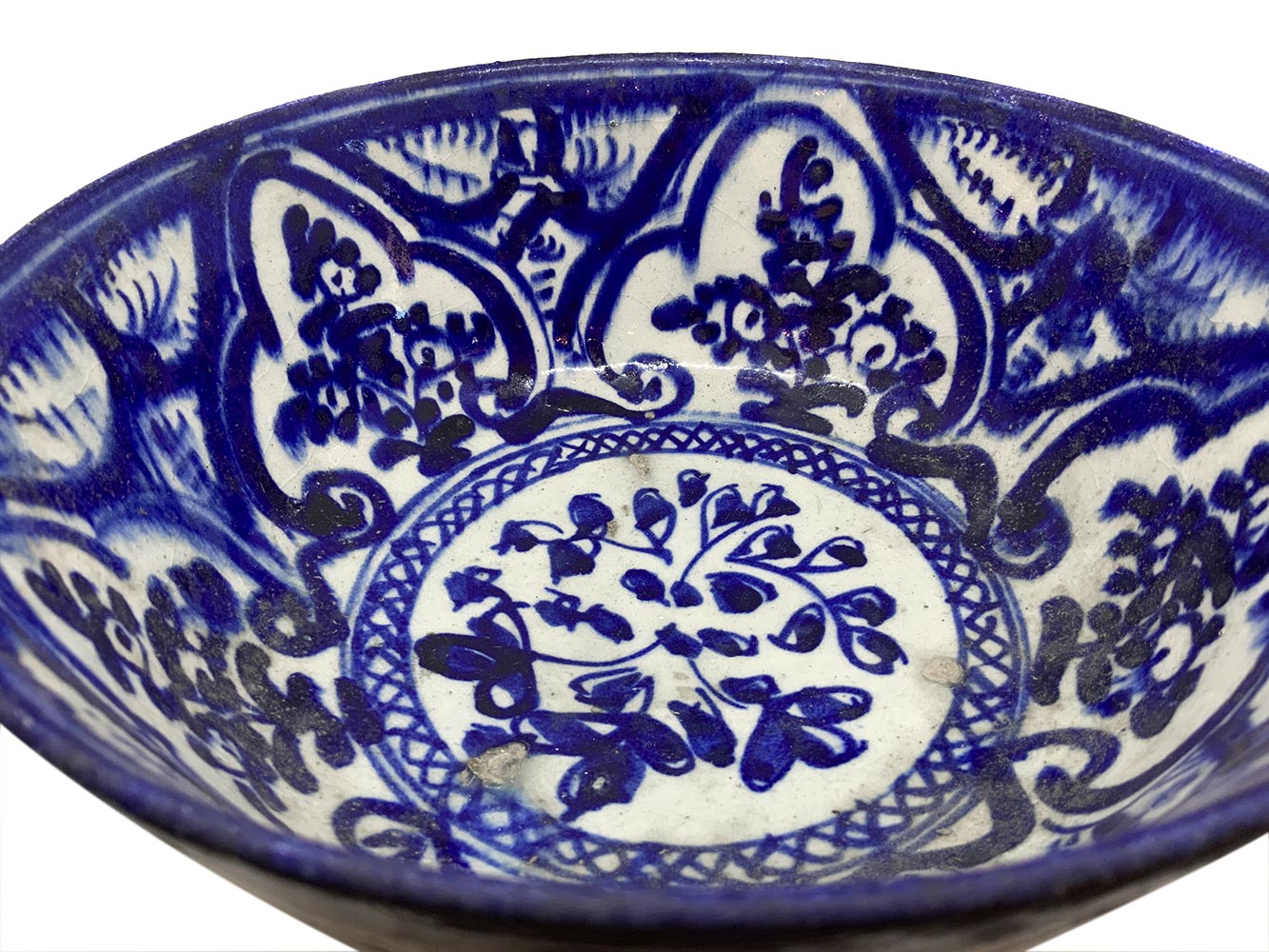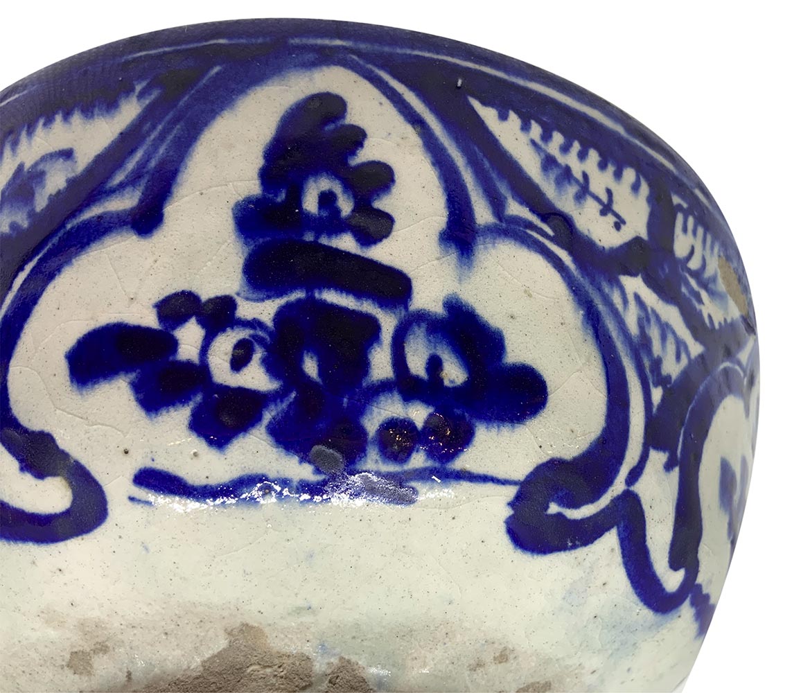Ciotola in maiolica, XVIII secolo, Islam. Fondo bianco, dipinta con motivi...