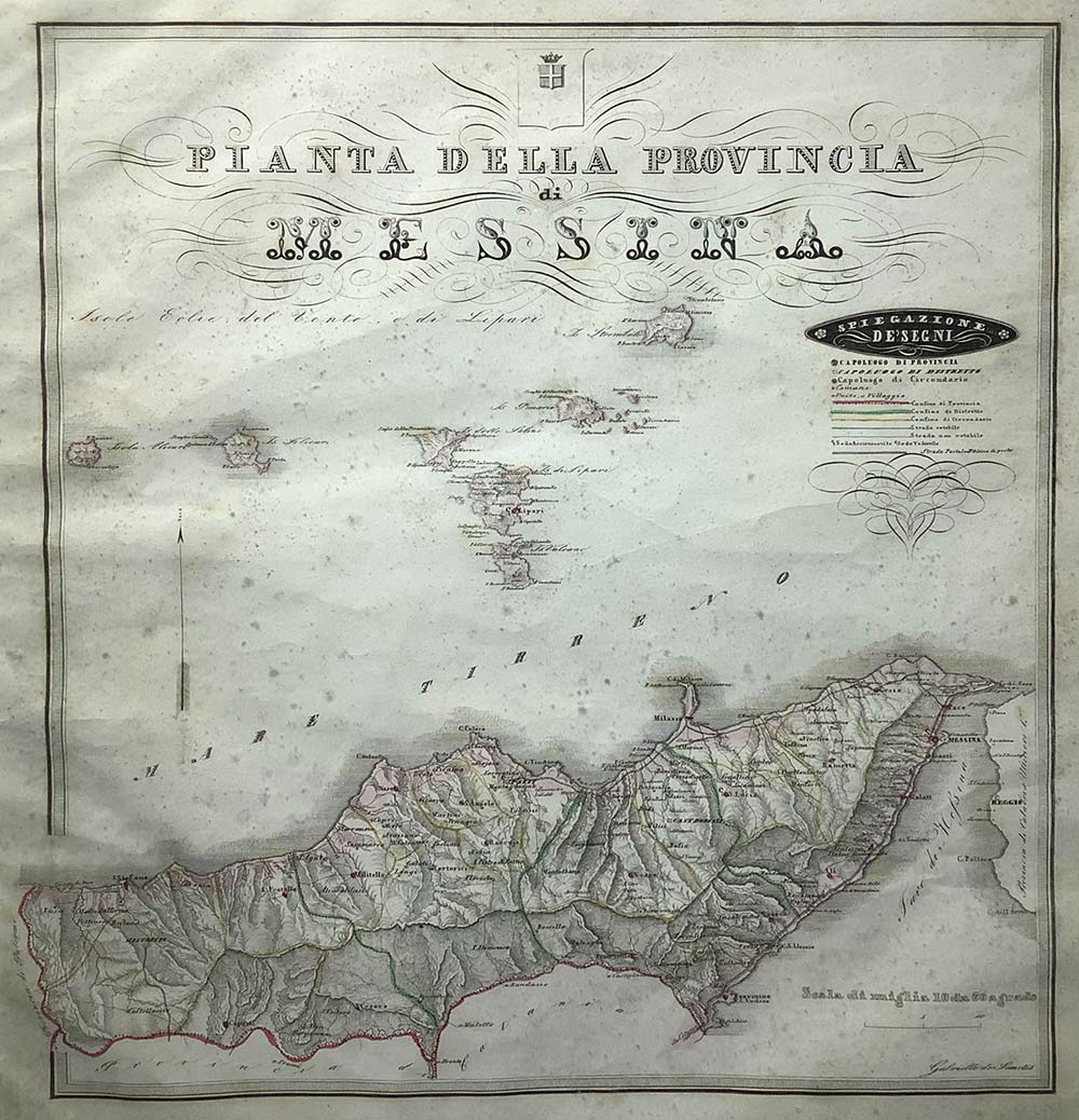 "Pianta della provincia di Messina, 1844, divisione amministrativa del regno...