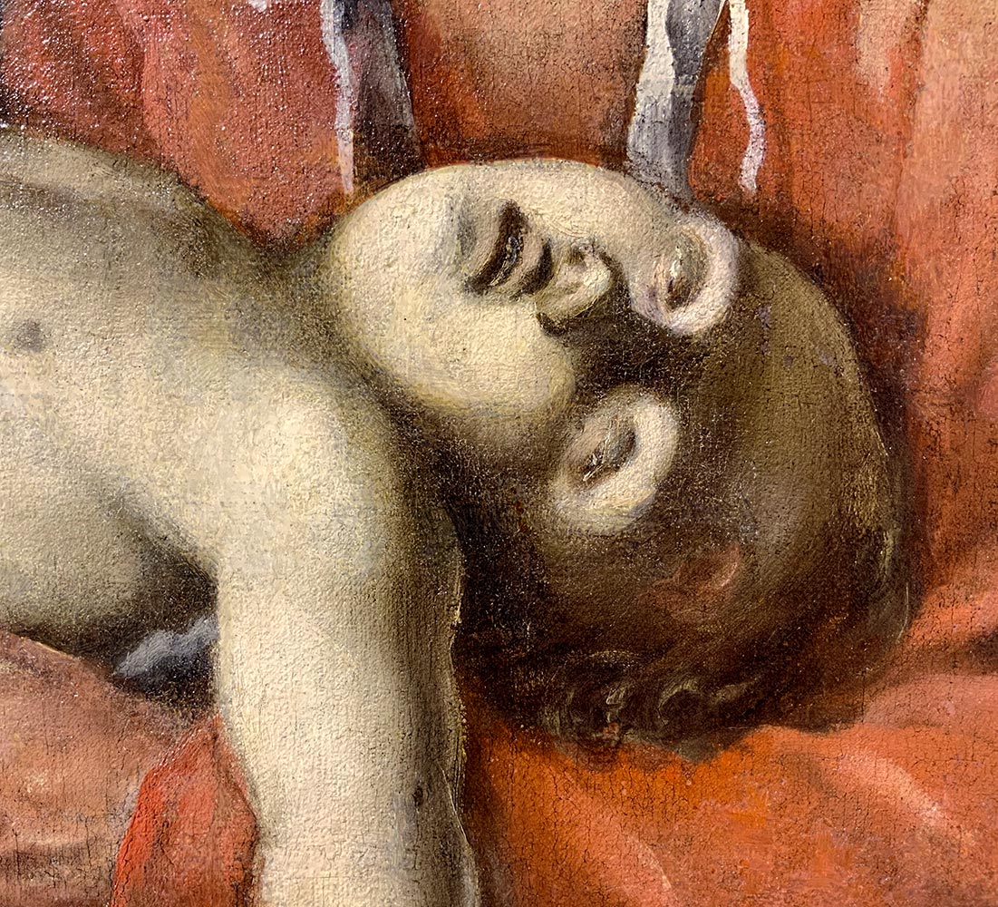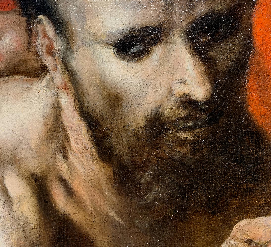 Carlo Saraceni (Venezia, 1585 – Venezia, 1625). Elia, il profeta della preghiera. 134x156, olio su tela. Siglato e datato 1620 in basso al centro"Il dipinto in questione è uno dei pochi dell'Autore ad essere datato (1620) e siglato con monogrammi. Senz'altro inedito, nuovo tassello nella ricerca della biografia di questo artista e nell'organizzazione della sua bottega, in cui collaborava Jean Le Clerc. Essendo l'opera datata poco prima della morte del pittore, in essa possiamo definire tutti i canoni stilistici del Saraceni che, nonostante la buona conoscenza con il Caravaggio, lo segue ma non lo imita, facendo propria la luce chiarosculare, metabolizzandola e rielaborandola per mezzo della sua formazione artistica veneziana. Permane infatti nei suoi dipinti la coloristica veneta che non giunge mai, come in quest'opera, alla drammaticità plastica dei caravaggisti, per esprimere e trasmettere allo spettatore un pathos che non è mai eccessivamente tragico ma volto tutto ad esprimere il racconto fattuale nella sua globalità e nella sua narrazione."STUDIO ASOR