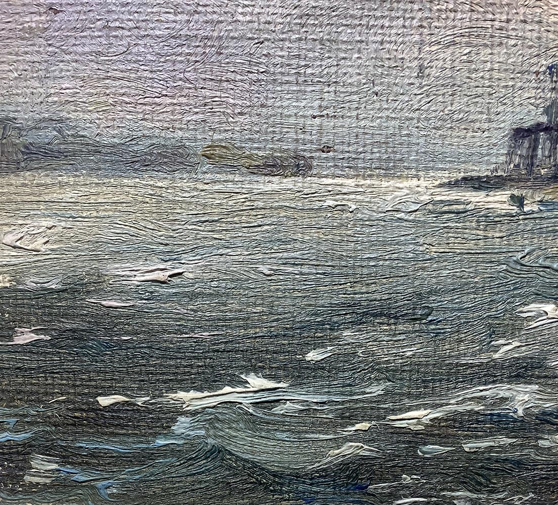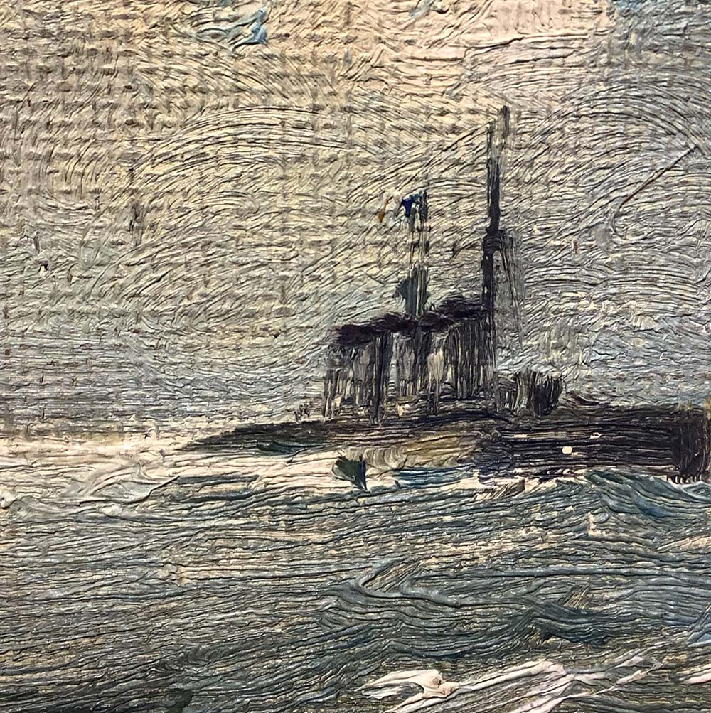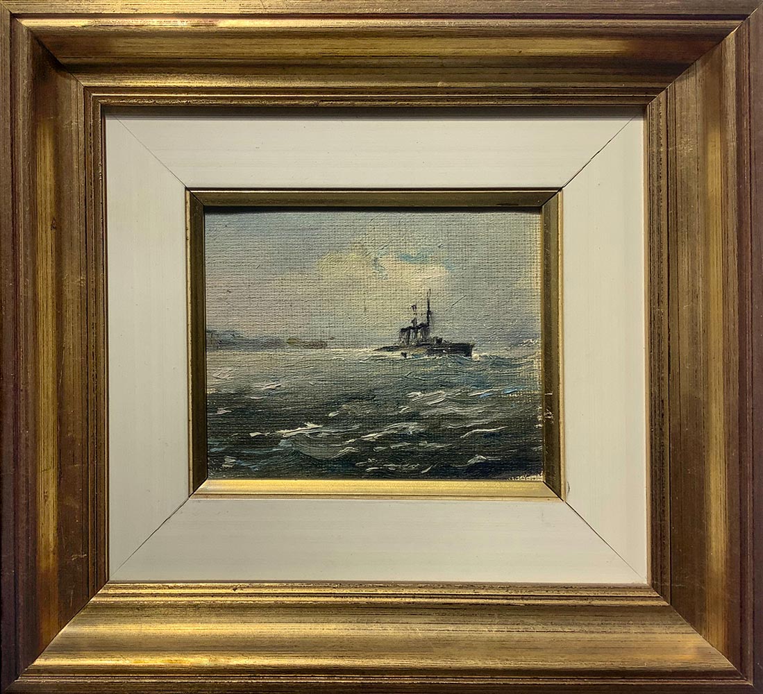 Elvira Del Giudice. Barca in mare. 11x13, olio su cartone telato.