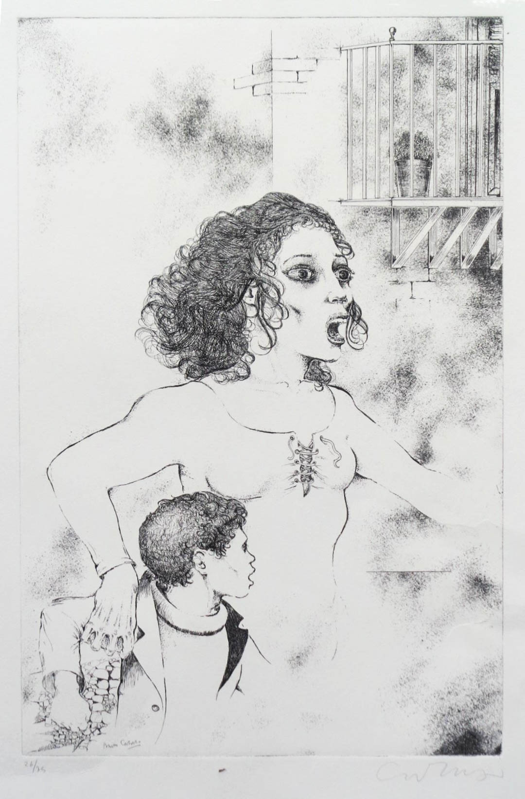 2 litografie in b/n su carta, cadauna 70,5 x 50,5 cm, timbro a secco "edizioni del Castello" e "Comune di Verona Musei d'arte"