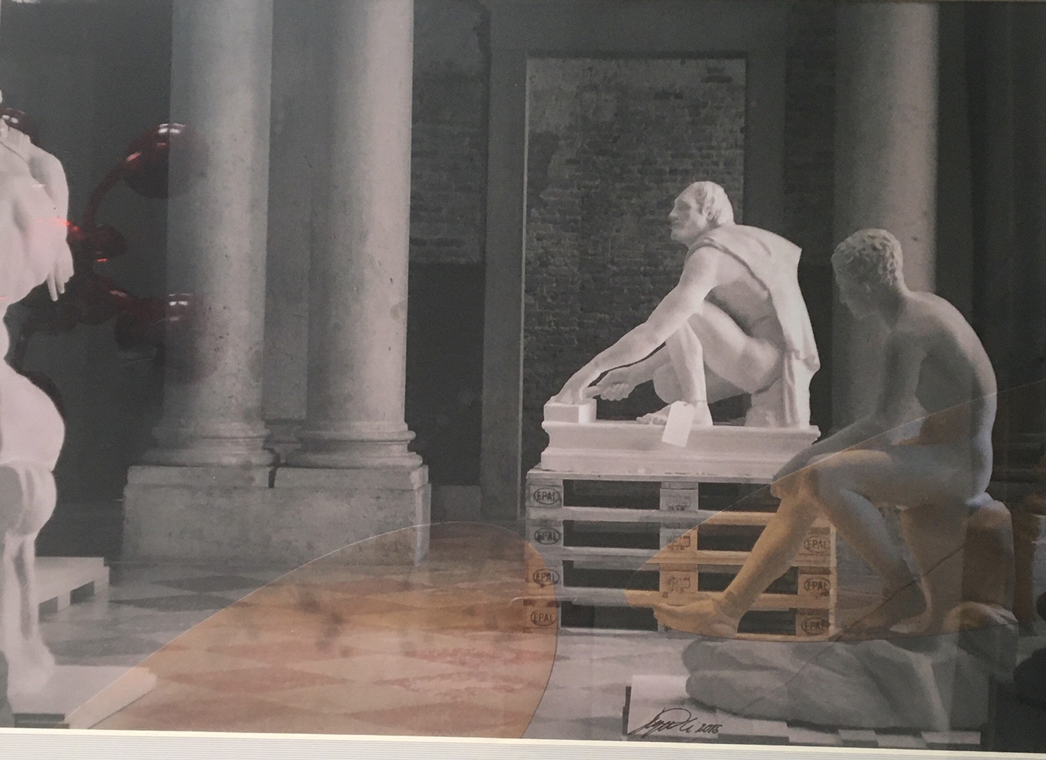 Venice, from 2015, pigments on photographic paper 40x50, piece unique, with a color photo collage insert, there aren't any other copies or similar in other formats and is inkjet printed. Signed on the label front of the artist.