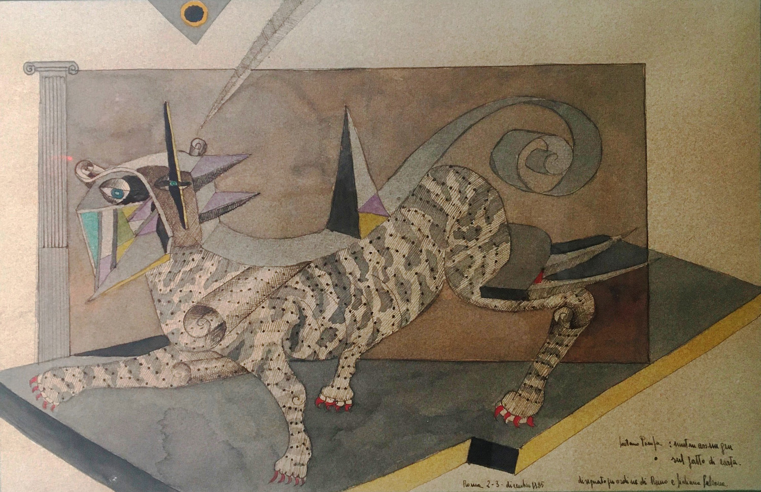 Oil on canvas 27x40 from 1985, signed dated and dedicated work bottom right, designed by order of Primo and Giuliana Galeona.
