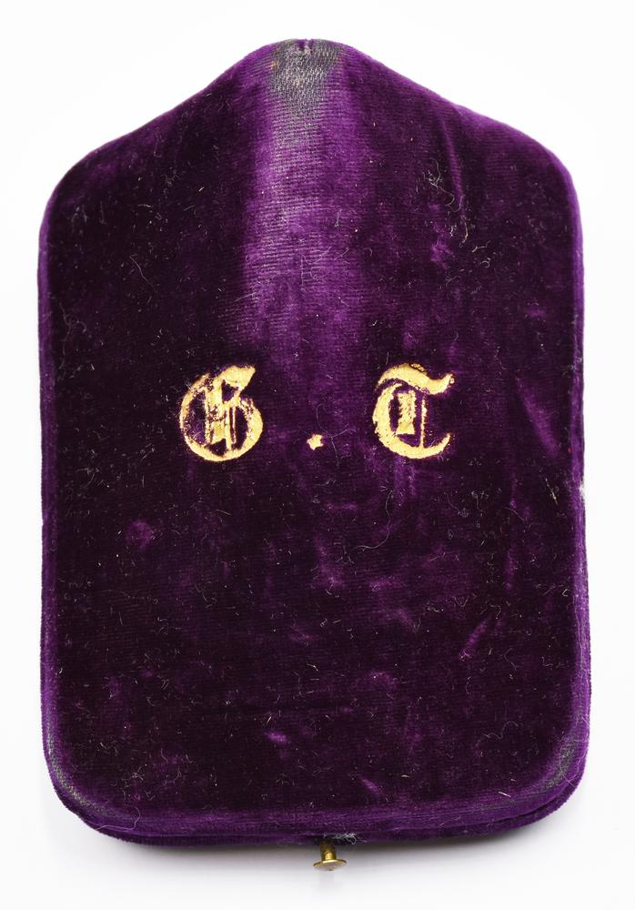 PENDENTE A FORMA DI CROCE IN PIETRA DURA CON ELEMENTI IN ORO ROSSO A BASSA...